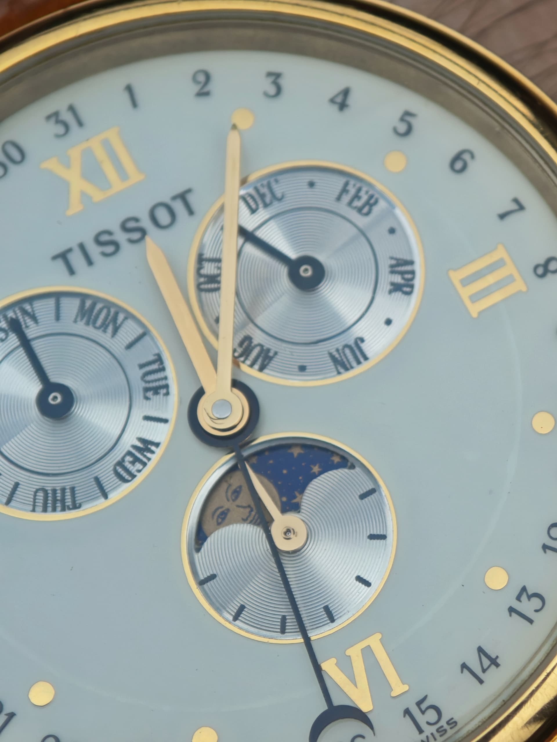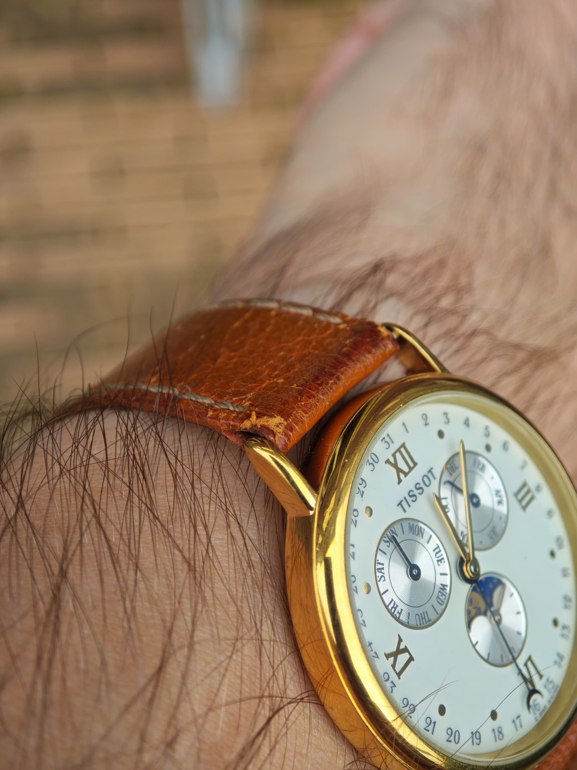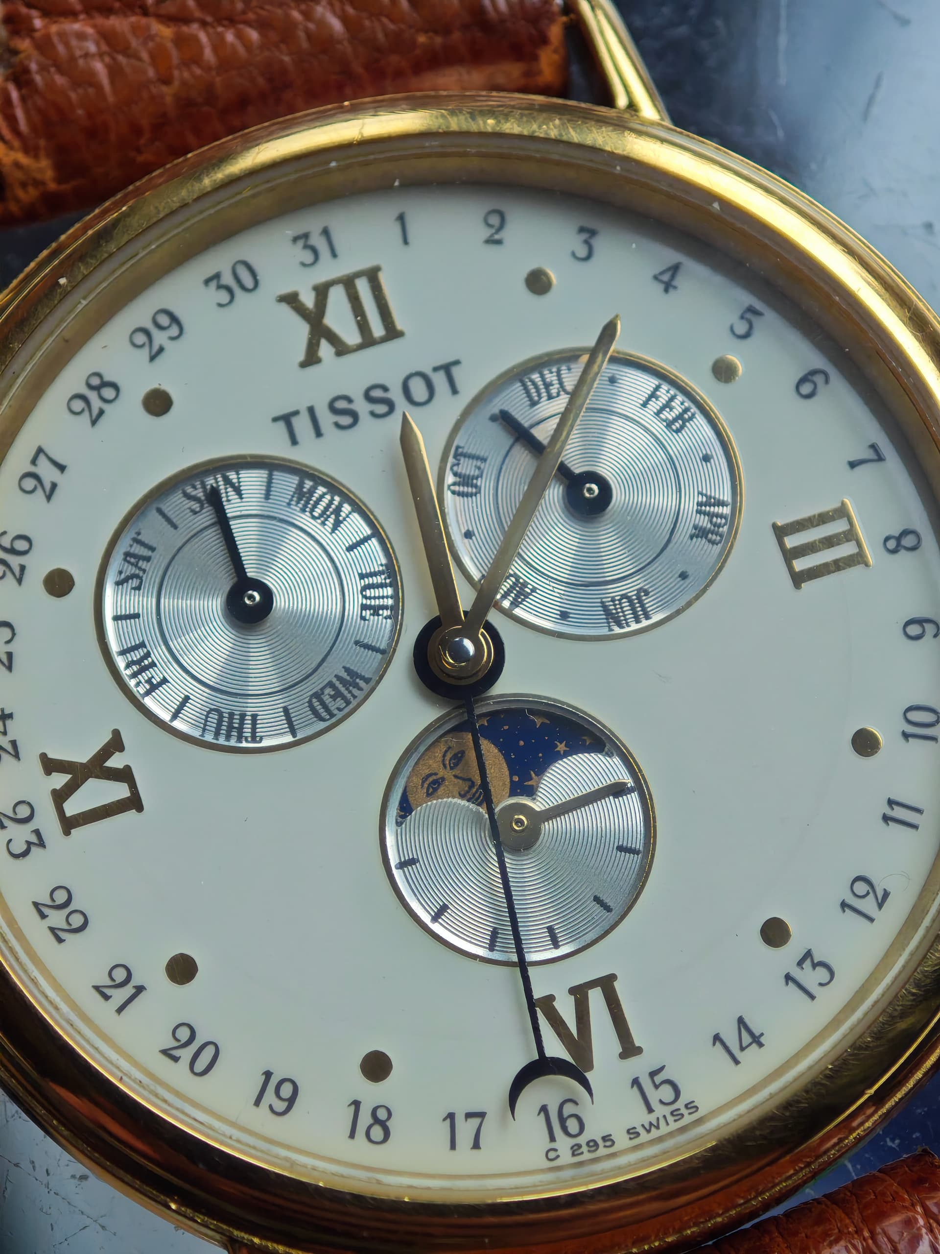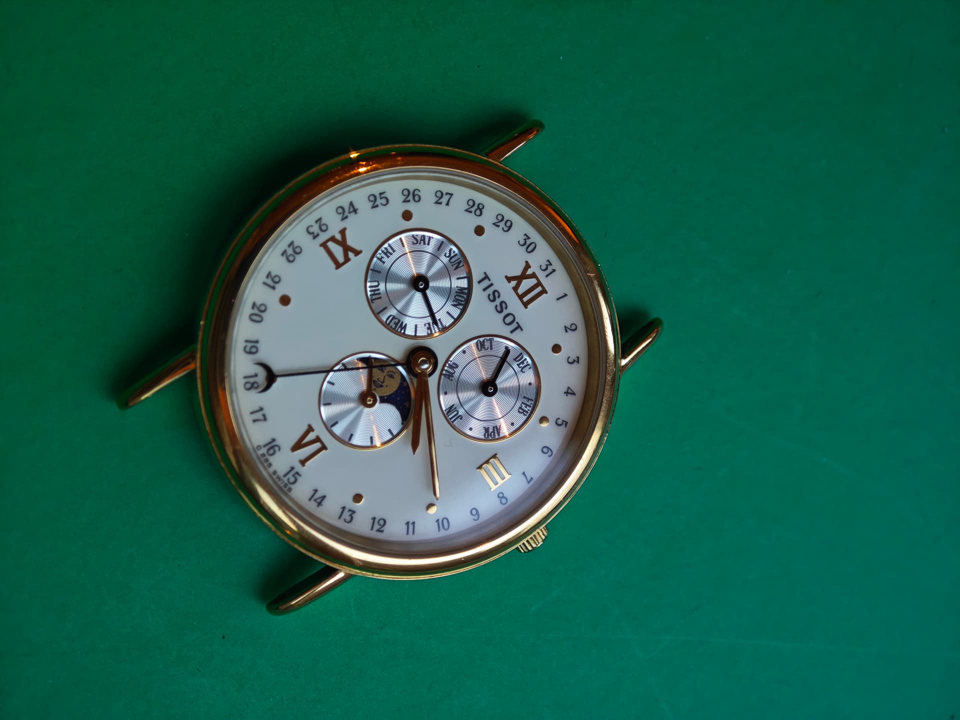 De foto’s spreken voor zich, erg mooi horloge met alle complicaties en in mooie staat. De kroon is niet Tissot gesigneerd, geen idee of dat wel of niet origineel is.