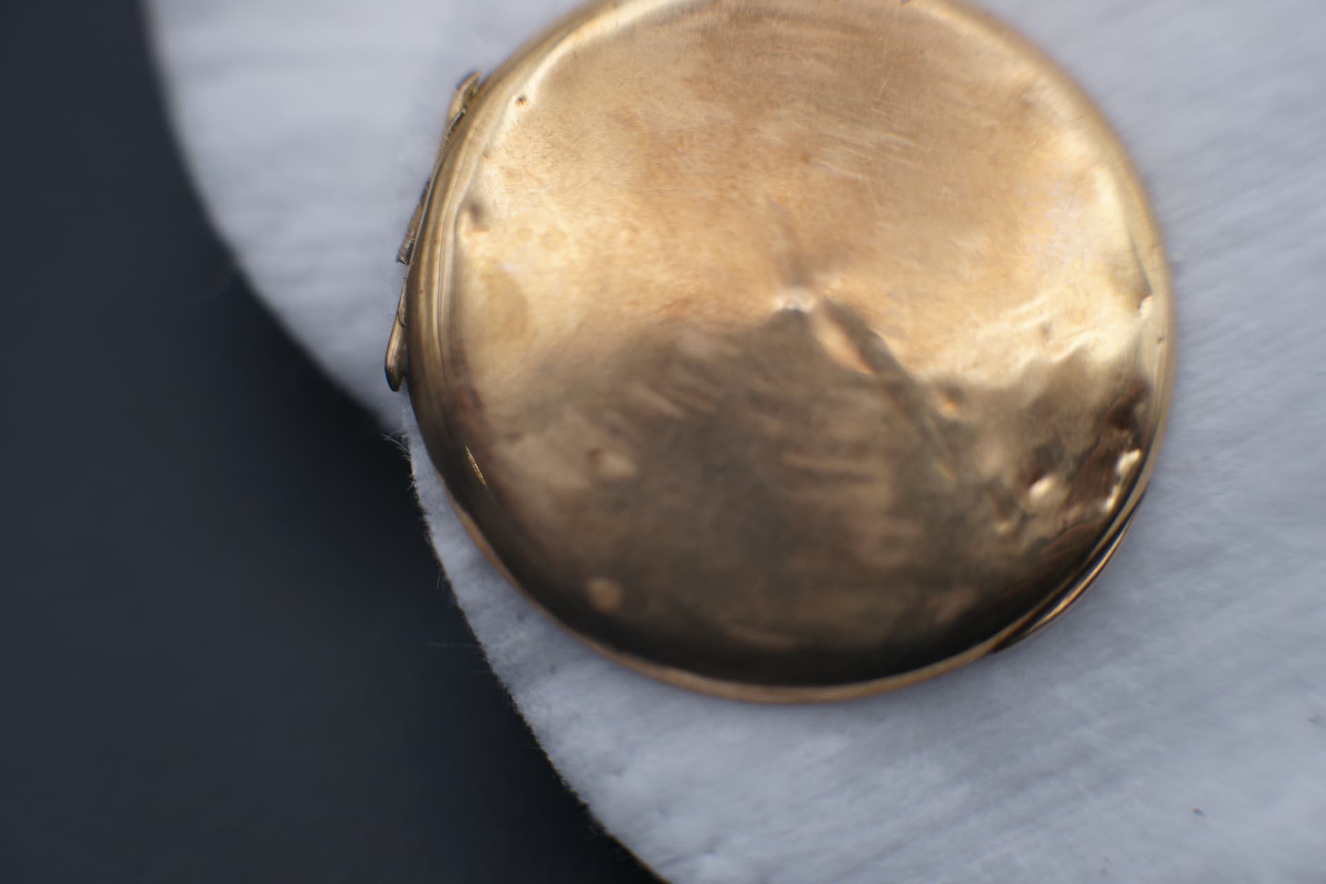 Hij is gemaakt van 14karaat goud. De kast is wel erg ver heen. Als hij geen emotionele waarde heeft kan het niet uit hem op te laten knappen.