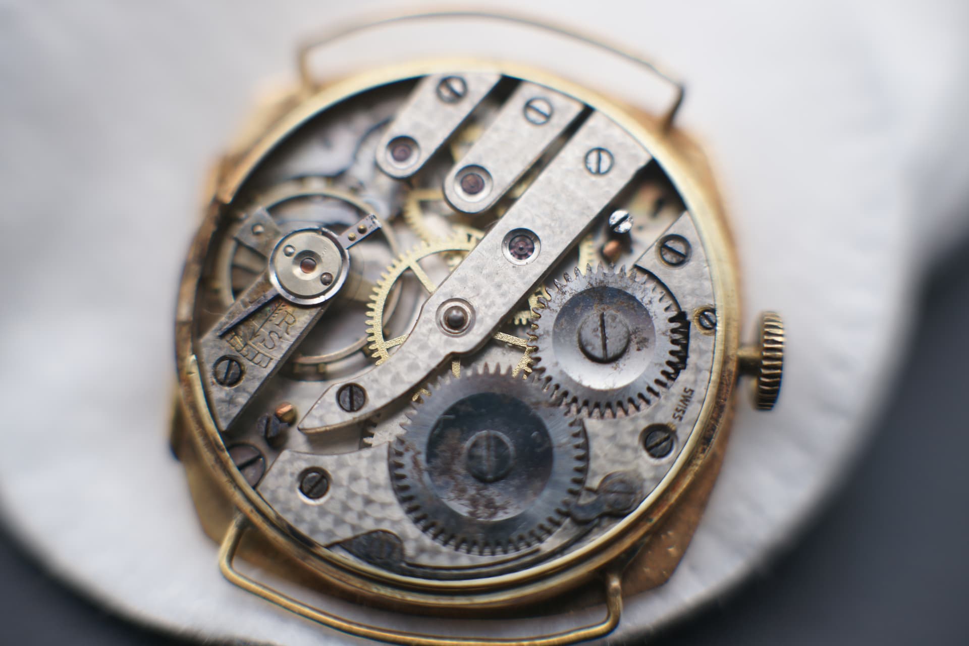 Het uurwerk wordt gedemonteerd, alle onderdelen gereinigd en gecontroleerd, om vervolgens teruggebouwd te worden met olie op de juiste onderdelen. Afstellen volgt daarna.