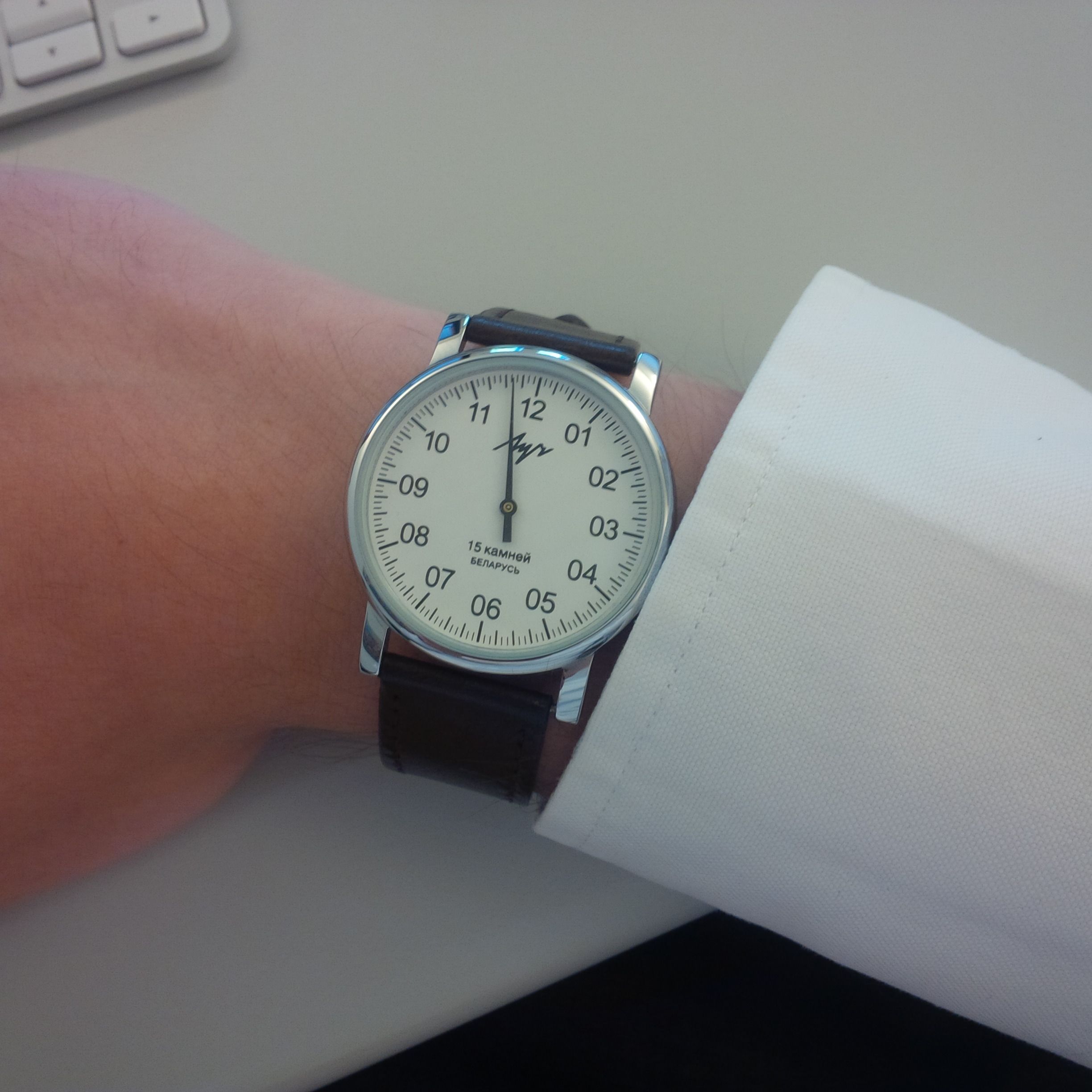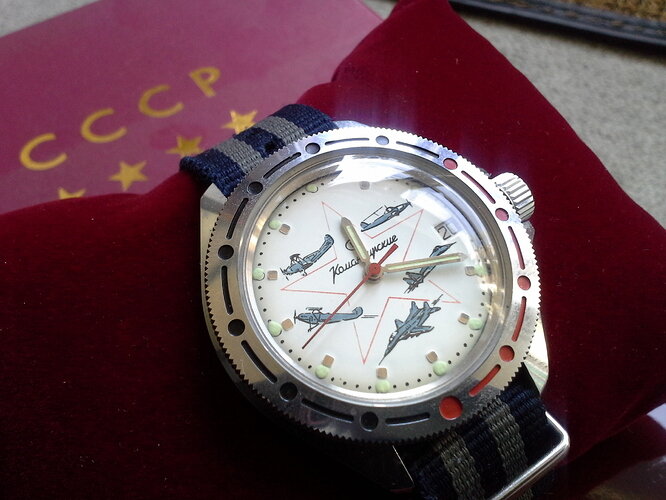 een toeristen Vostok, het uurwerk loopt echter snaarstrak