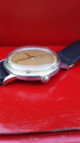 Komt uit Duitsland, verkoper had m geerfd en lag sindsdien in een lade… wel geen koopje hoor maar voor mij persoonlijk was (is) een gilt jaren 40 Angelus een grail.