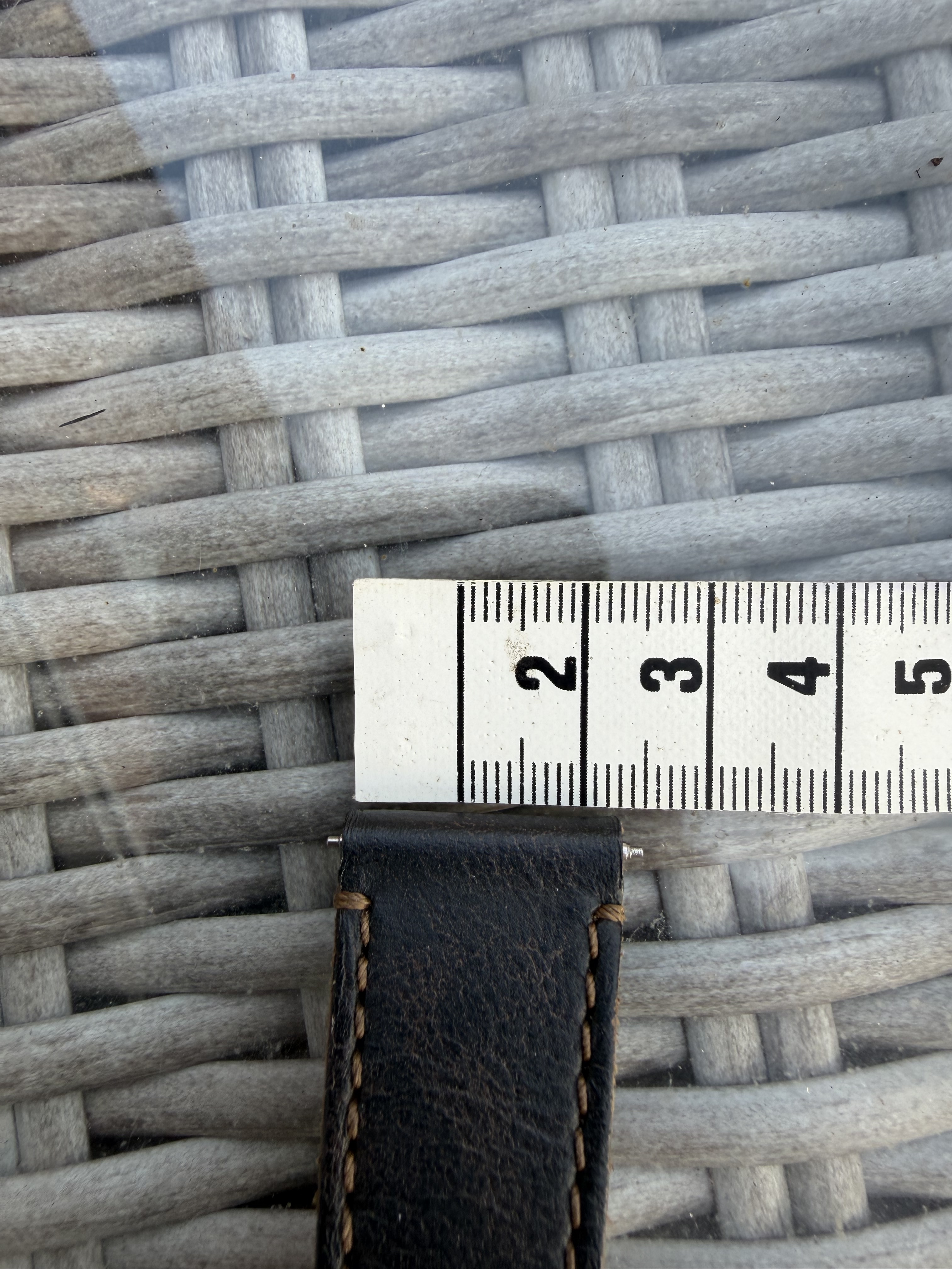 Zie dat er een paar extra gaatjes bijgeprikt zijn door de vorige eigenaar en 1 gaatje bij de springbar is iets ruimer.