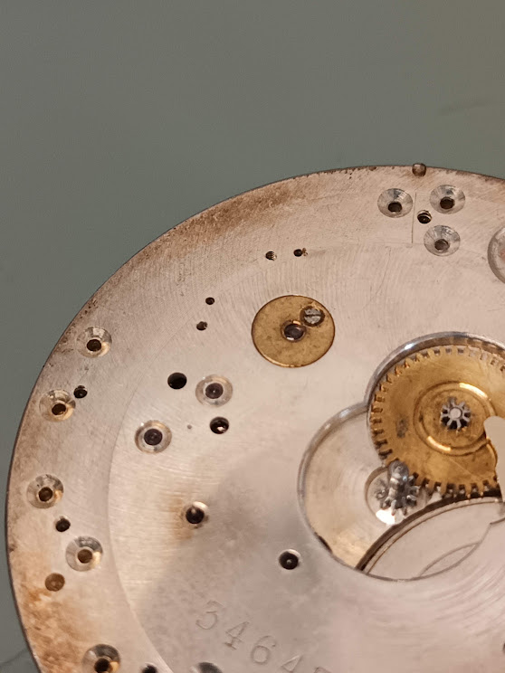 Allez vooruit naar de mechaniek, normaal komt nu de foto alles in de pot, daar hebben we dan toch maar even mee gewacht en de “herstellingen” van de vorige hersteller volgens het principe zoals het kan dan toch maar eerst opgelost. Zoals het kan doe je nooit iets, blijf er dan gewoon van af. Je doet het zoals het moet en niet zoals het kan, is alleen maar heel irriterend voor de volgende hersteller en je horloge werkt nooit zoals het hoort - spoiler: dat zal het nu ook niet meer doen na alle herstellingen zoals het moet omdat de herstellingen zoals het kan net iets te veel schade hebben aangericht.