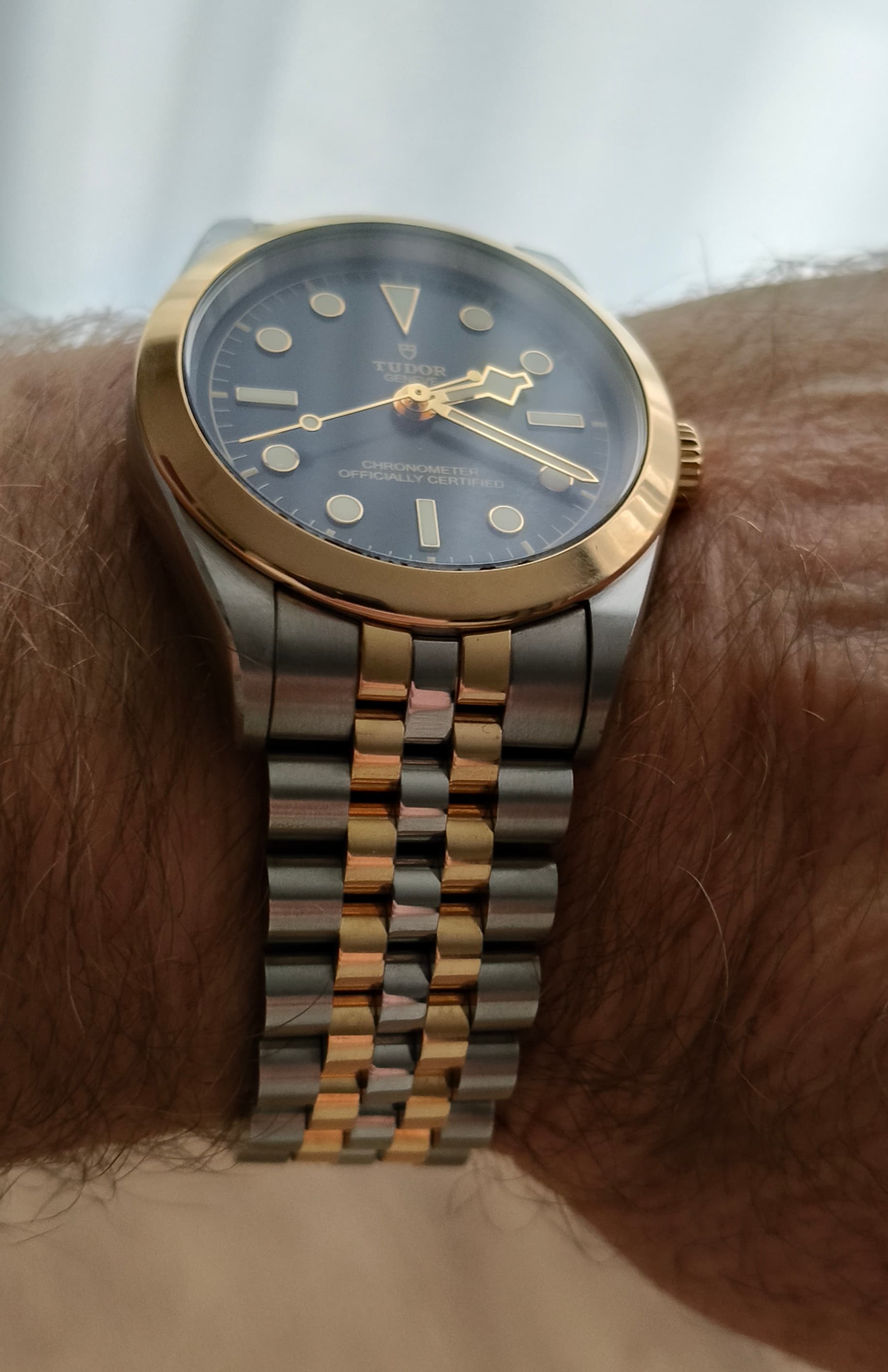 Al verschillende Tudor’s in bezit gehad en nog niet de One, dit moest er dan toch een keer van komen. Ik ben erg content met de “eenvoud” van het horloge waardoor ik deze de benaming “Clean” geef, een aantal weken geleden heb ik de staal/blauwe verkregen via een gewaardeerd forum lid waar ik erg blij mee ben. Later zag ik bij @royke74 van Q-watches een mooie combi in TT welke ik ook erg mooi vond en die ook maar meteen aan de collectie toegevoegd. Beide de horloges er content mee en draag deze “naast mijn BB58 goud” met veel plezier mede door de extra afstelling in de clasp en de Jubilee band, beide in de 39mm. uitvoering.