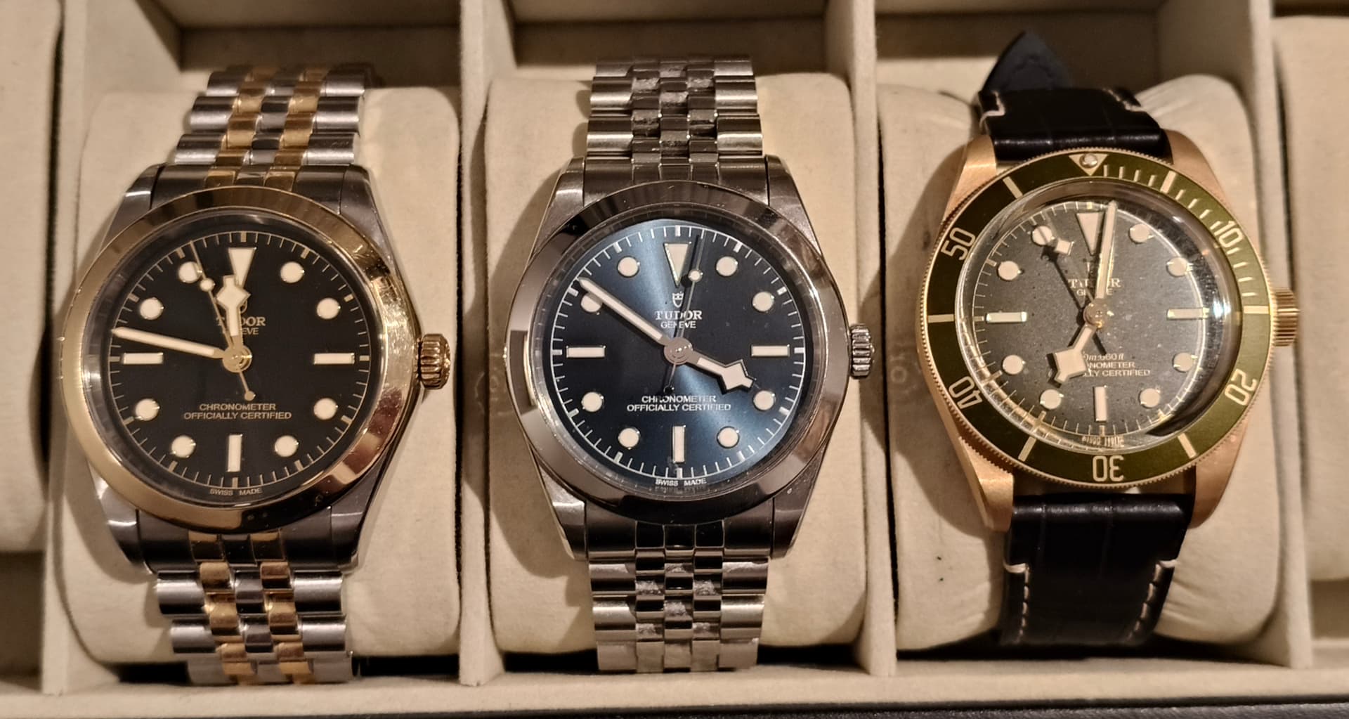 Hoi Seumpie gefeliciteerd met dit mooie trio en natuurlijk met je laatste The One, lekker cleane wp, meer heb je eigenlijk niet nodig, Zelf vind ik die stalen met de blauwe wp het mooist. Wens je natuurlijk veel draagplezier met dit mooie trio