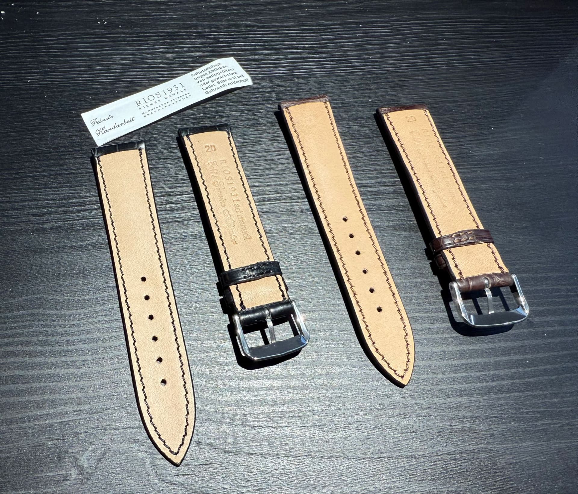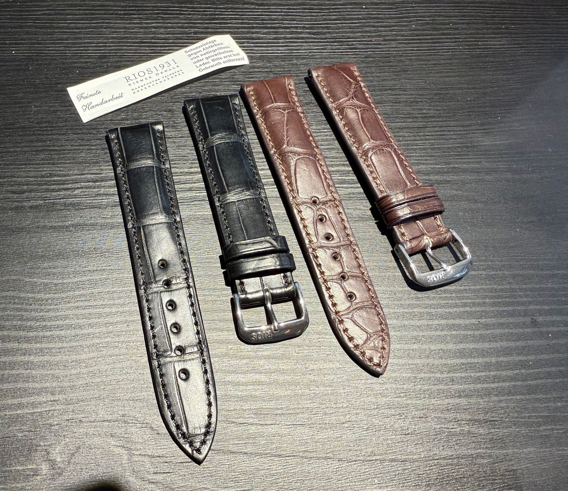 - Zwarte alligatorband, breedte: 20mm / 18mm; lengte: 80 x 115mm; handgestikt