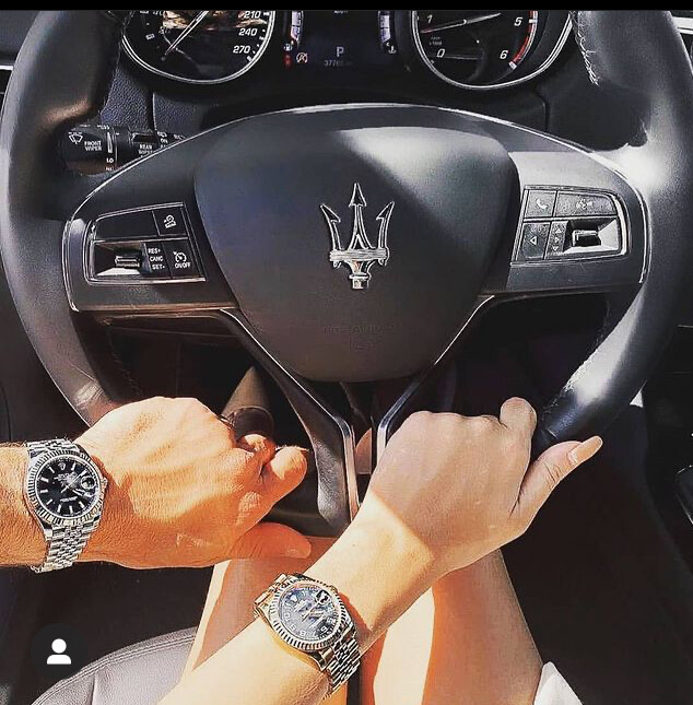 Rolex’en zijn echt, auto is een Fiat Croma met aftermarket Maserati-logo.