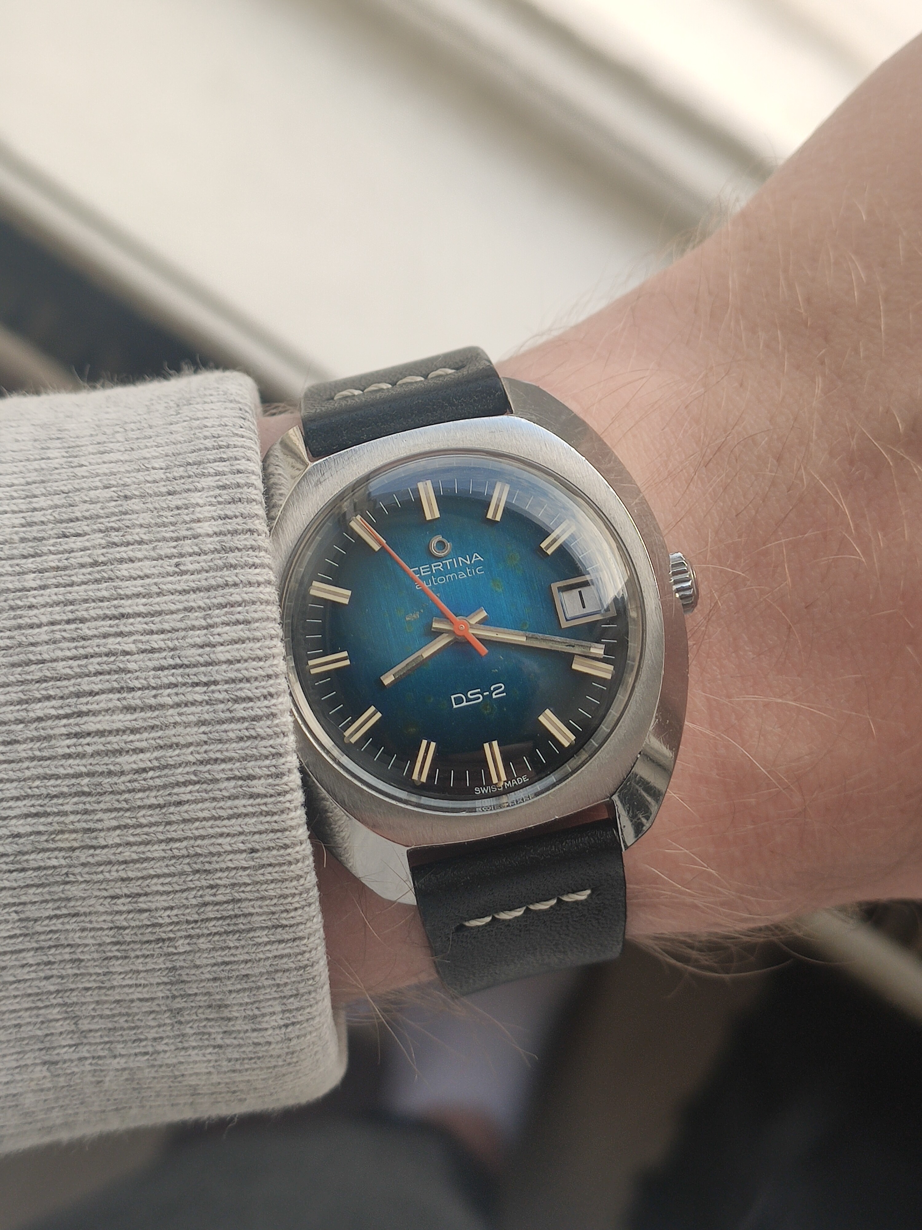 Opa’s Certina DS-2, die ik bijvoorbeeld gisteren droeg op een bandje gemaakt door @SLLS. Gisteren zou hij 90 zijn geworden, dus een mooie gelegenheid.