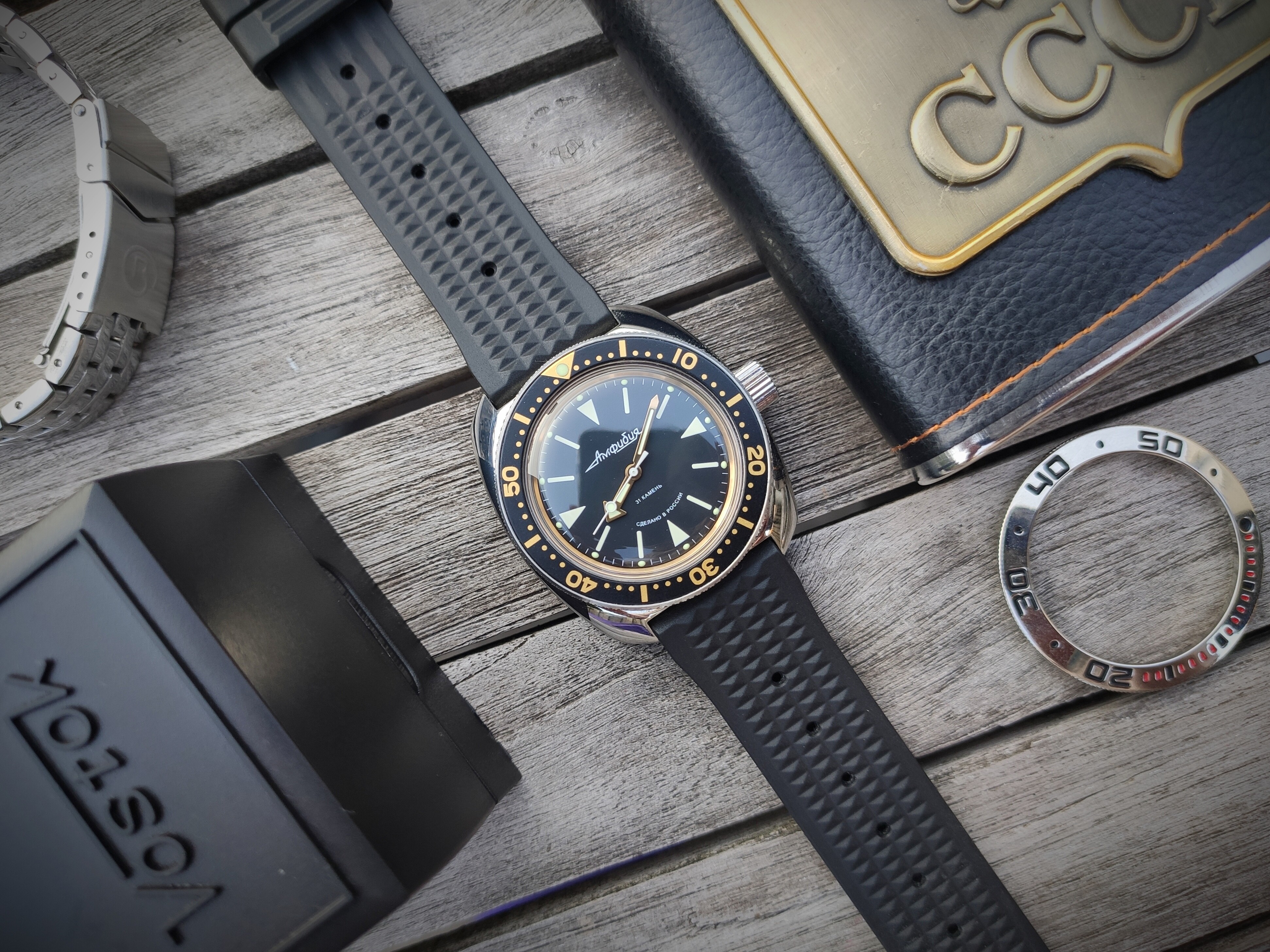 Na een maand of twee kwam ik er toch achter dat zit het ook niet helemaal was. Hierdoor bestelde ik twee horloges: Een Casio Day-date en een Vostok. Ik vond modden steeds interessanter worden en de Casio was gewoon grandioos voor het geld. De Casio was echter wel een beetje saai, dus meteen er weer uit geflipperd. Met de Vostok ging er echter een wereld voor mij open. Wat een ontzettend gaaf ding voor 60 euro. Ik had een nieuwe bezel gekocht en een nieuwe insert, om hem hier mee te modden. Het idee was een beetje blackbay58-achting en was werkelijk beretrots op de Russische knaller.