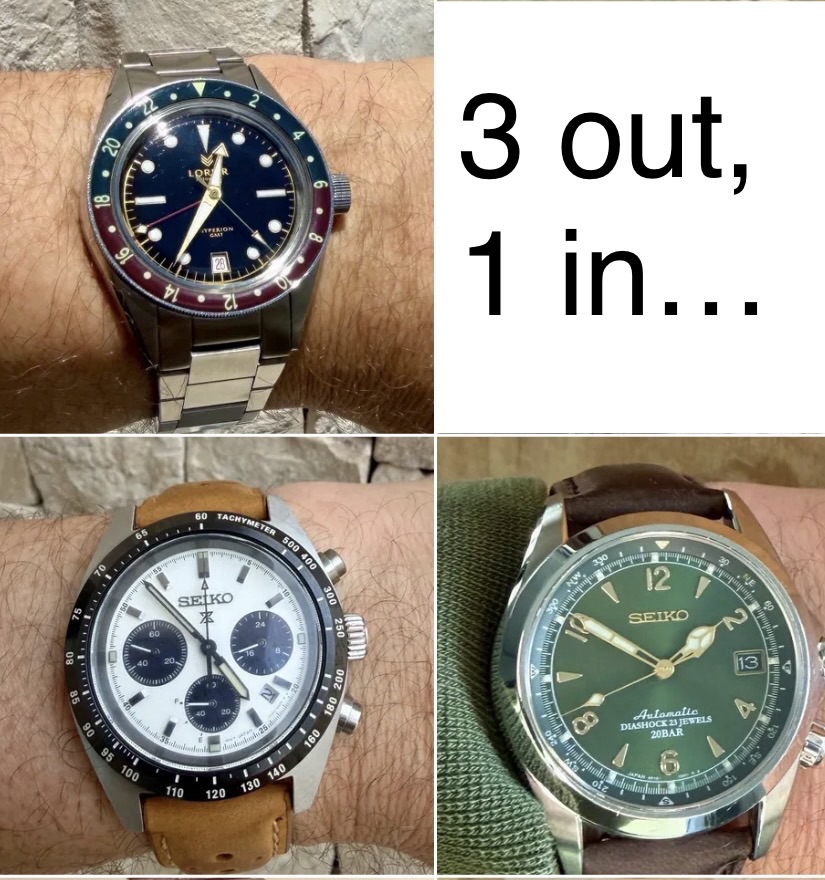 Ik zou persoonlijk niet voor die Longines hebben gekozen, maar om wat te verkopen (in mijn geval bijna diezelfde Seiko’s) om ruimte vrij te maken voor wat anders is een prima idee.