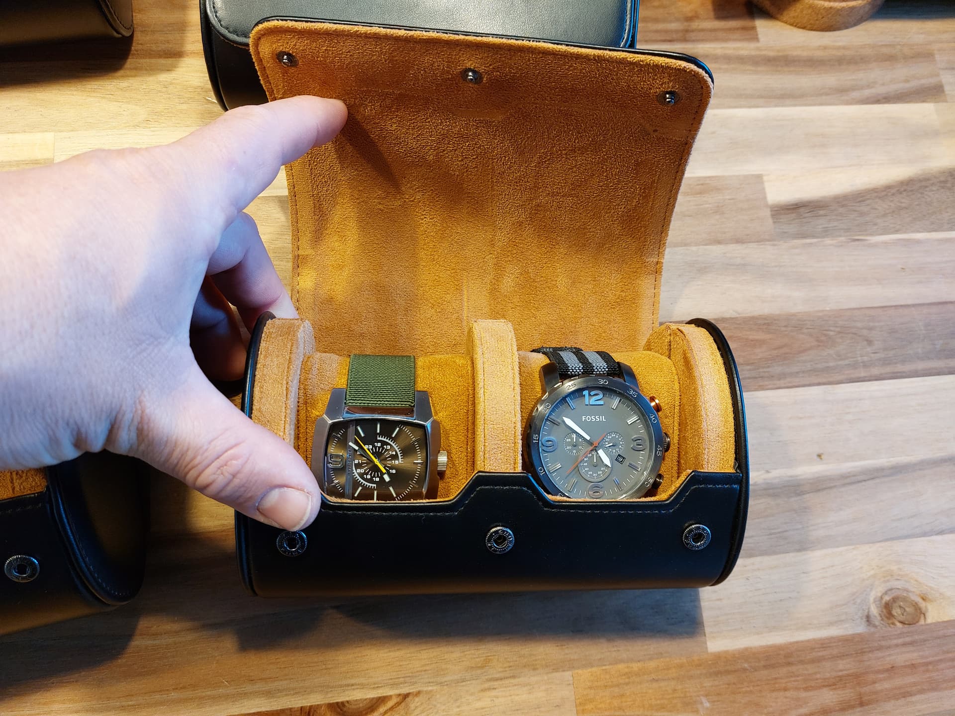 4 horlogerollen te koop, zo goed als nieuw. Ze zijn gemaakt van kunstleder, 2 stuks voor 2 horloge en 2 voor 3. Ze mogen alle 4 weg voor 50 euro. Los de grote 15 euro, kleine 12,50 euro.