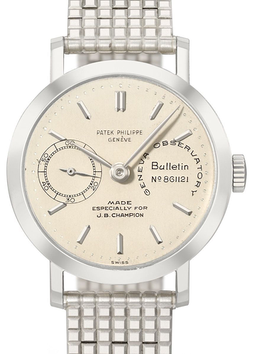 Als je wilt dat Patek je naam op een wijzerplaat drukt, dan moet je wel een hele bijzondere jongen zijn. JB Champion was dat! Niet te verwarren met de bandenmaker die toevallig ook JB Champion heet. Deze JB Champion was een van de succesvolste strafrechtadvocaten van NY. Hij scheen een obsessie voor precisie te hebben en dat zien we terug aan zijn verzameling Pateks en Vacherons. Deze merken deden vaak mee, en wonnen bovendien regelmatig, aan prestigieuze wedstrijden van Geneva Observatory. Hiervoor werden dan speciale ultra precieze uurwerken gemaakt. Naar verluid heeft Patek 30 van deze super precieze uurwerken gemaakt en van slechts 2 zijn ooit echt een horloge gemaakt. 1 Daarvan was dus op speciaal verzoek van deze VIP klant, housed in Platina kast van een 2458 met unieke platina band. Dit horloge vestigde het record voor duurste time-only in 2012; 4 miljoen dollar.