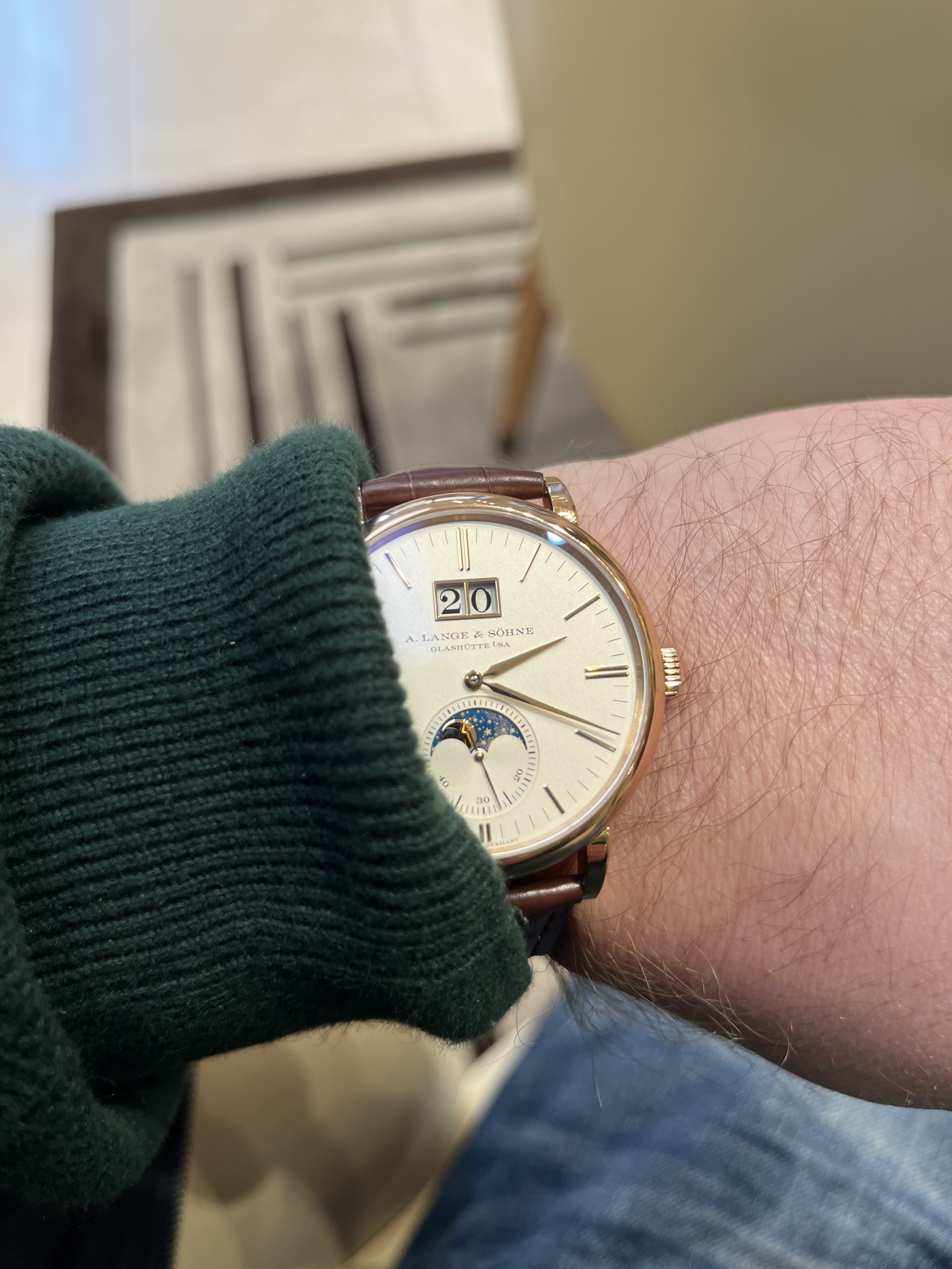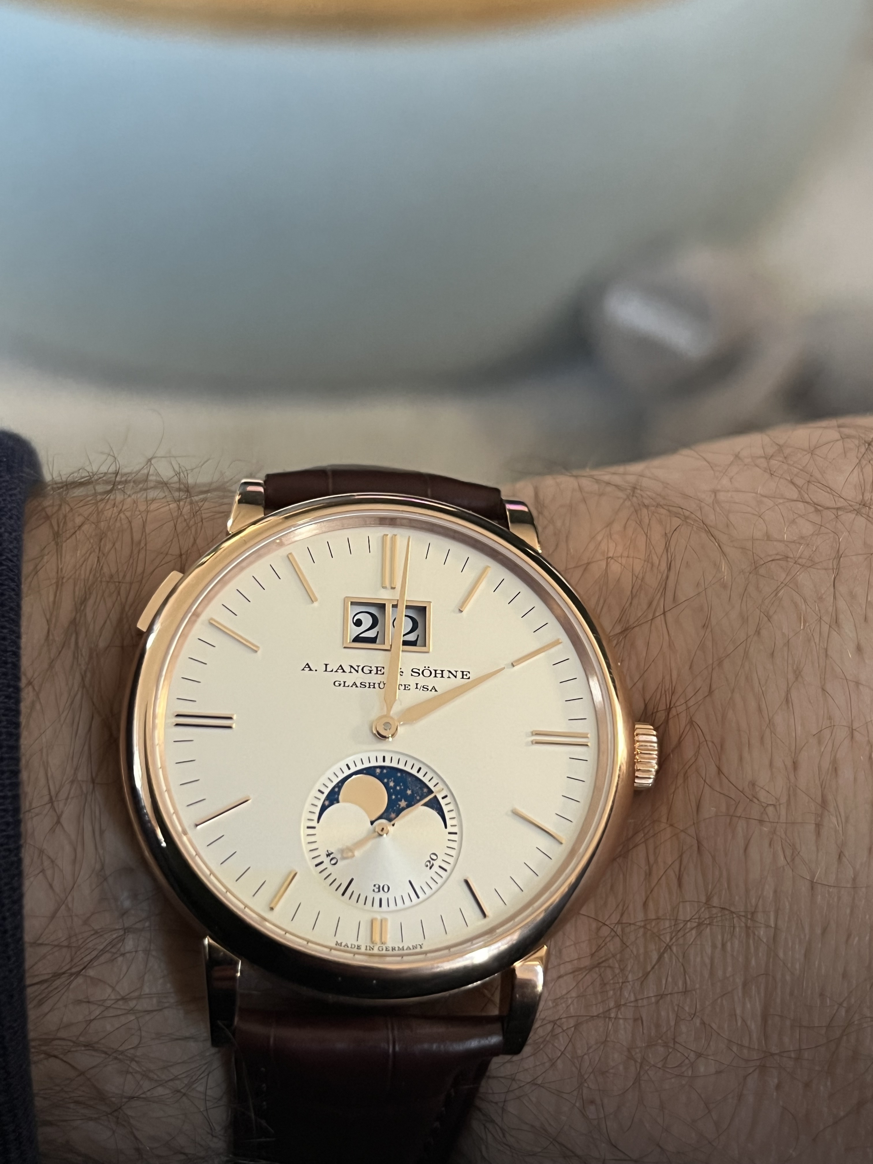 In november heb ik mijn L&S Saxonia moonphase weggebracht voor een service en een nieuw bandje. Afgelopen vrijdag mocht ik hem eindelijk weer komen ophalen. Wat een genot! Hij is werkelijk weer als nieuw teruggekomen. Zo blij mee! Goed voor jaren draagplezier. Super goede service van Martens gehad. Nu weer genieten van de lichtinval met de lentezon en fantaseren over de volgende ![]()