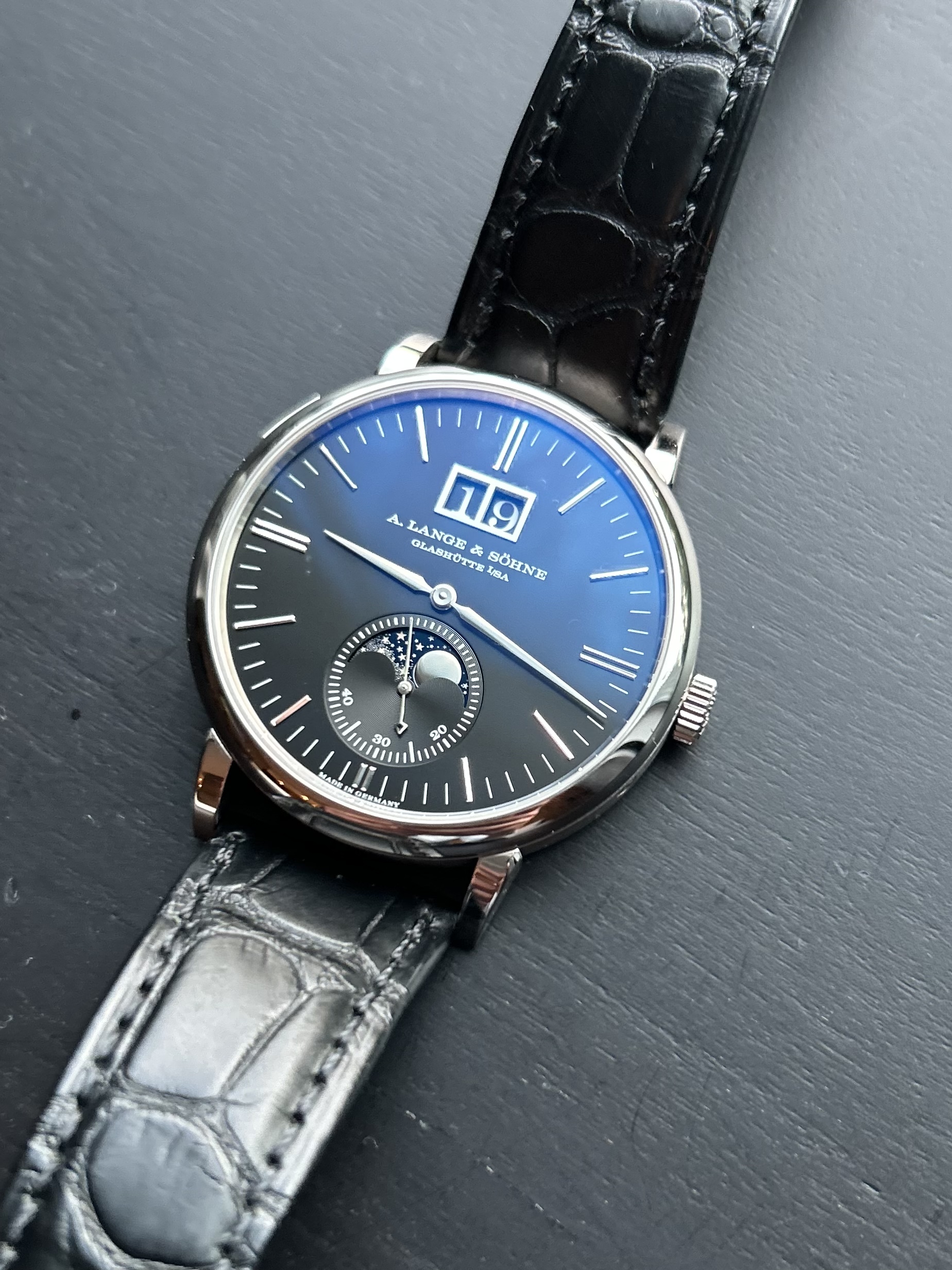 Laat ik proberen hier iets zinnings over te zeggen. Zo rond 2015 is het uurwerk compleet vernieuwd. Was er iets mis met het oude uurwerk? Absoluut niet. Maar dit is juist zo typerend voor Lange, het maakt hun niet zoveel uit of er zichtbaar iets verandert, Lange heeft altijd de drang naar perfectie. Als zij het uurwerk 0.5% nauwkeuriger kunnen maken, dan zullen ze dat zeker doen. Je moet de oude en nieuwe uurwerken even naast elkaar zien om de verschillen op te merken. De uurwerken zijn min of meer gespiegeld qua setup.