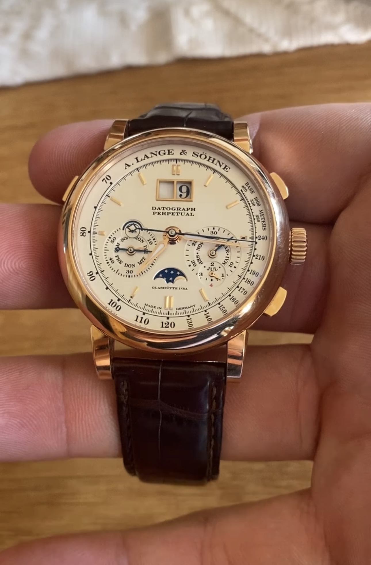 Heel gaaf. Hij is rose toch? Dat vind ik altijd zo’n mooie kleur bij Lange en dan is dit volgens mij niet eens hun speciale honey gold legering.