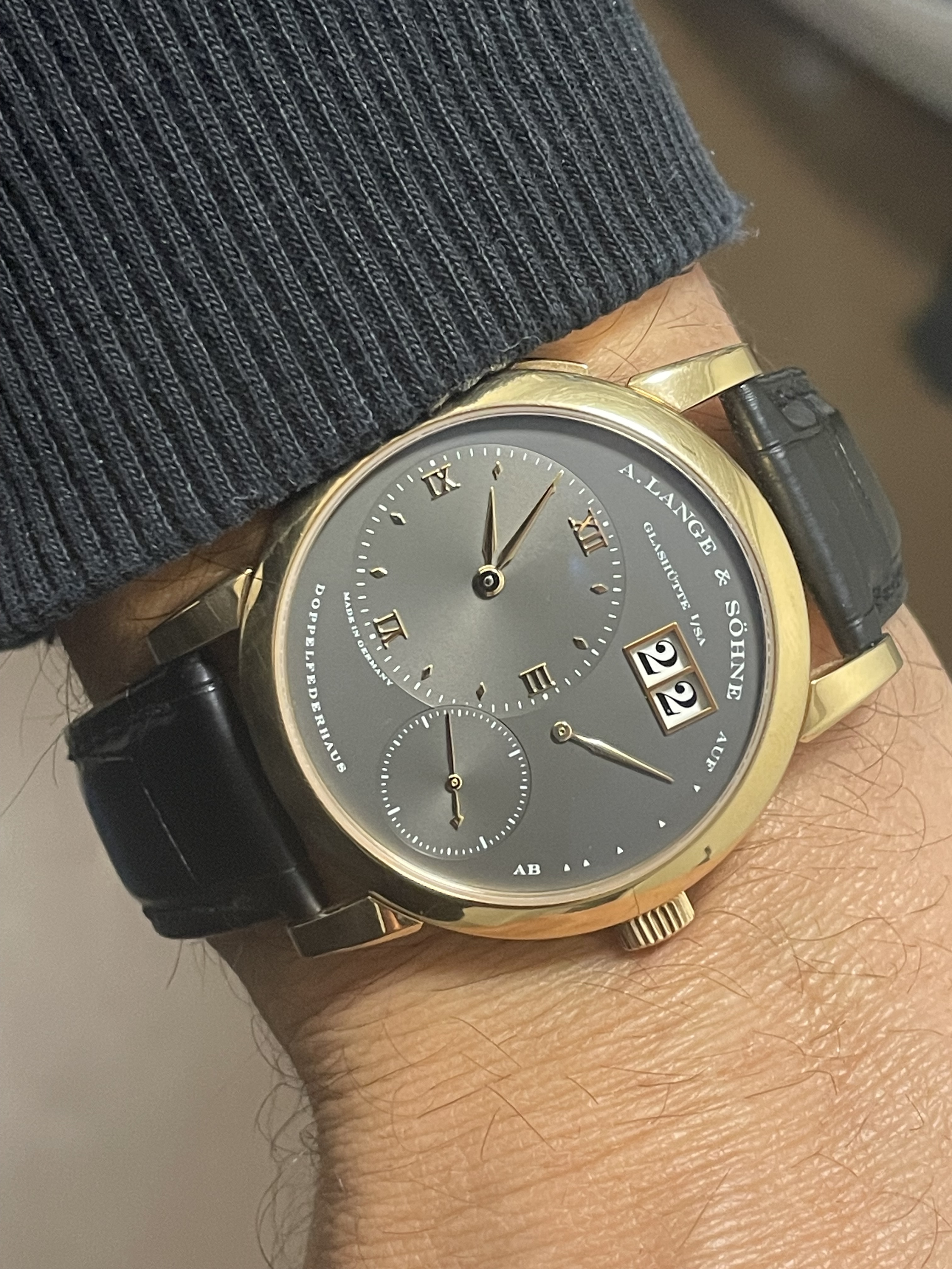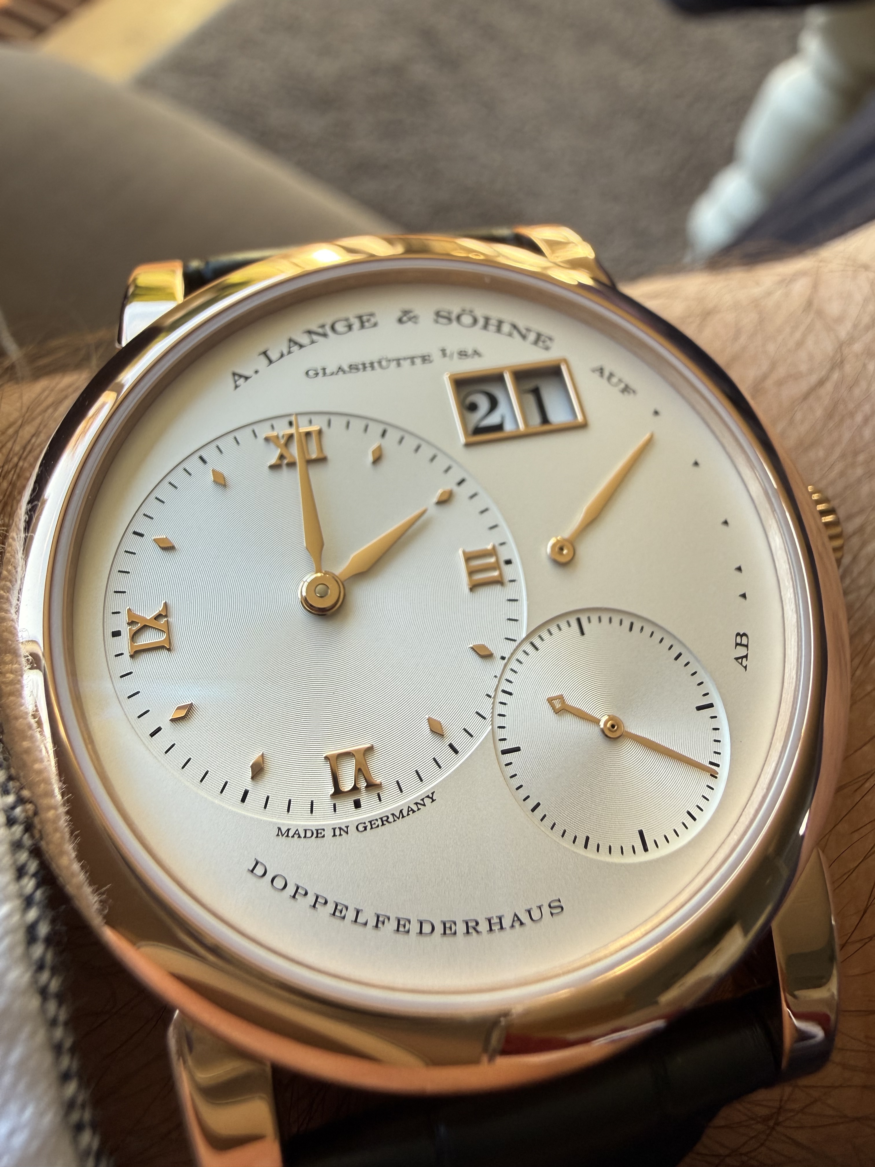 Vandaag in de A.Lange-boutique enorm vriendelijk geholpen door een hele gastvrije dame. Alles werd uit de vitrine gehaald of kwam van achter en alles was te koop dan wel te bestellen. Dat had ik in eerste instantie niet verwacht. Zelfs de boutique-only modellen konden worden aangeschaft, de zogeheten ‘Flagship Exclusives’.