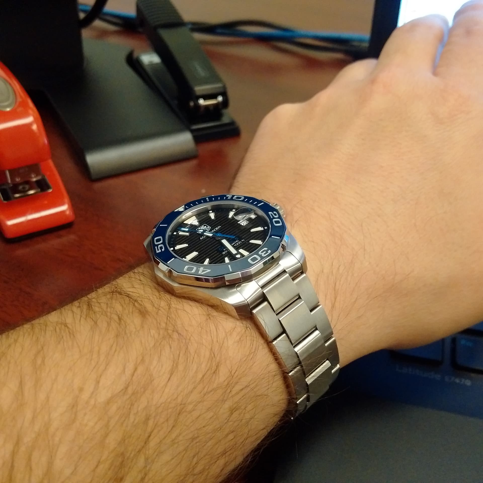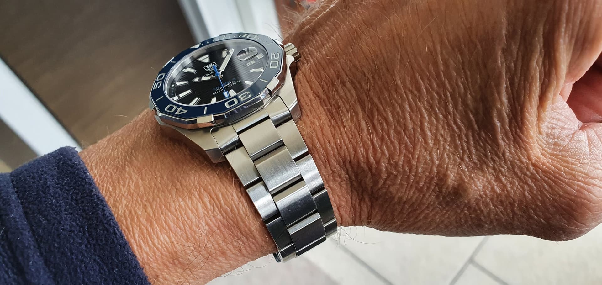 Heeft ook andere wijzers en het oude logo TAG op de wijzerplaat.