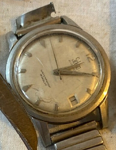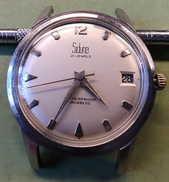 Maar wel een mooi stalen kastje en een nog gave wijzerplaat en nette wijzers. En het was dus wel een zeldzame Siduna. Met een ook niet oninteressant FHF 73-4 uurwerkje, uit ca. 1955, volgens de bekende roze pagina’s.