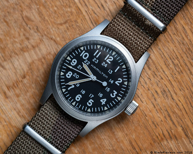 Hamilton Khaki Field (verschillende versies), wel eens in mijn handen gehad, deed me niet heel veel. Terwijl dit toch een horloge is waar je snel aan denkt bij mijn omschrijving. Ik denk dat ik erop uitgekeken raak.