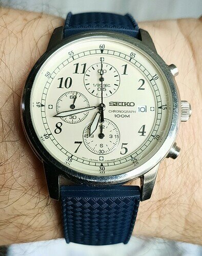 Absoluut waar. Ik heb zelf bovenstaande Seiko, en gebruik die als klushorloge. Het bandje zelf is niet slecht, maar dat is smaak… Ik heb hem zelf op een rubberen tropic staan, geen slechte combinatie…