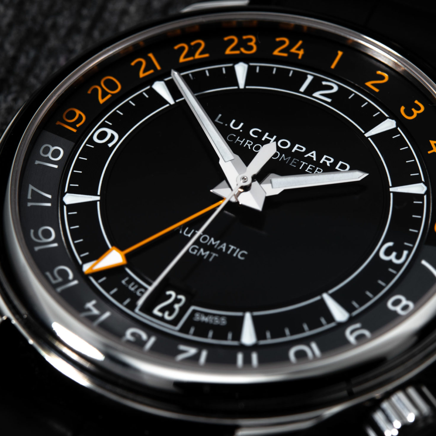 What’s vastly different in this new variant is the case material. Along with the L.U.C Time Traveler One Black that was co-presented at Watches & Wonders 2021, the GMT One Black is the world’s first travel watch to have a case crafted in ceramised titanium. Ceramised grade 5 titanium is created by subjecting the surface layer of titanium to extreme temperatures, effectively oxidising it. This treatment results in greater corrosion resistance and increased hardness for the famously lightweight metal.