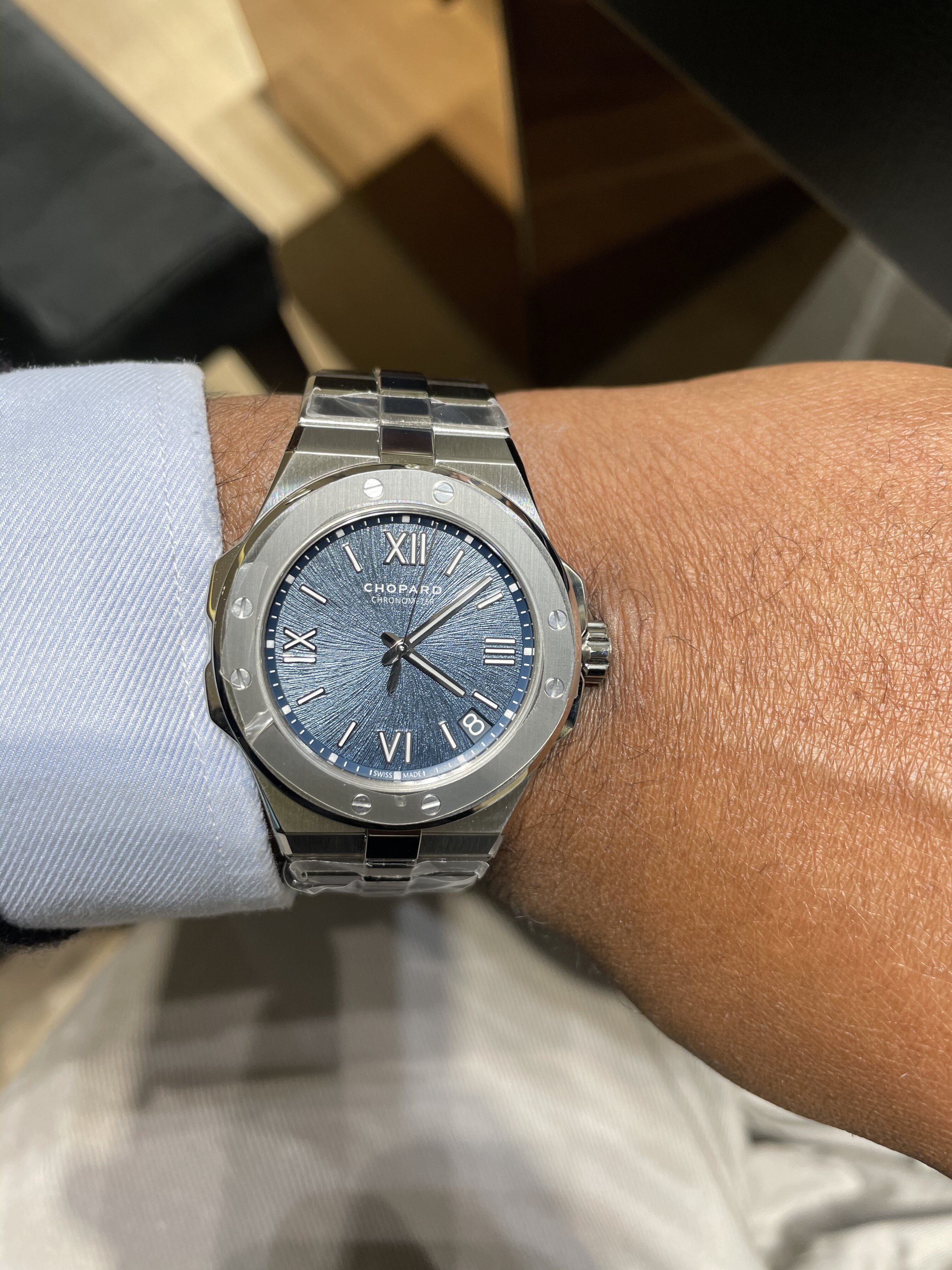 Ik vind de Chopard Alpine Eagle 41mm een fantastisch horloge. Voldoet aan al jouw vereisten. Behalve de prijs dan. Retail is 12.8k. Maar ze worden op chrono al aangeboden voor 9.2k. Brand new.