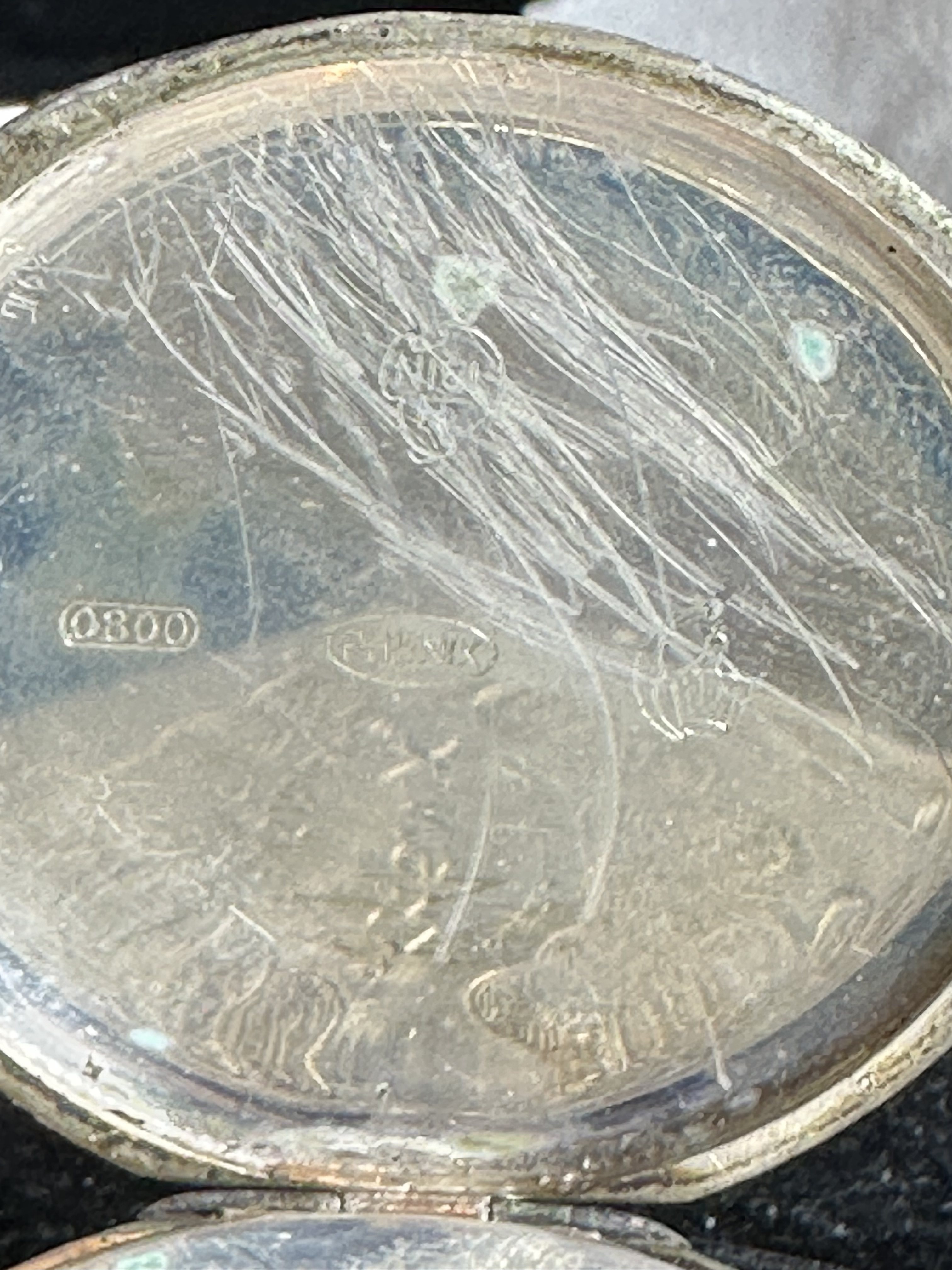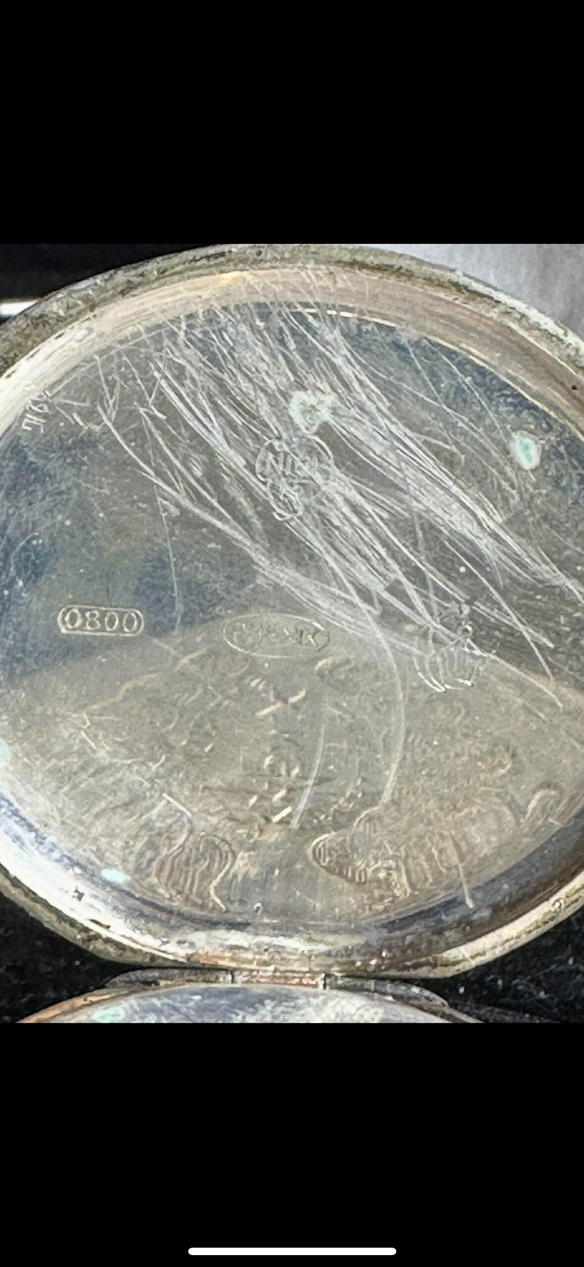 De spiegelkast is voorzien van kenmerken : zilvermerk en is 0.800 zilver, merken van de grand prix Parijs 1900, en wel zes inscripties.