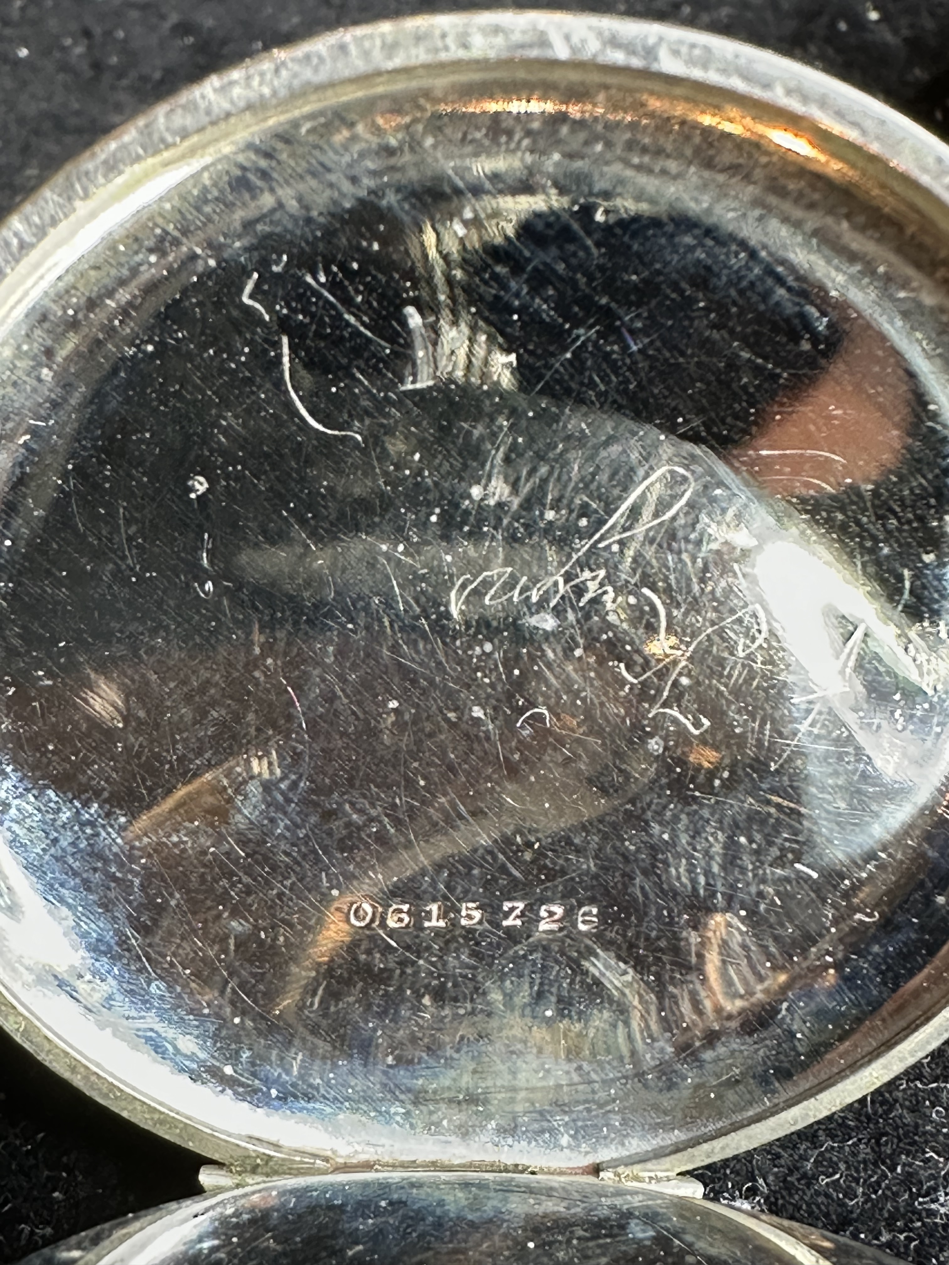 Bij het openen van de achterzijde kwam er al een spiegel tevoorschijn met de naam erin van “J Krijns”. Altijd leuk om de vorige eigenaar te ontdekken
