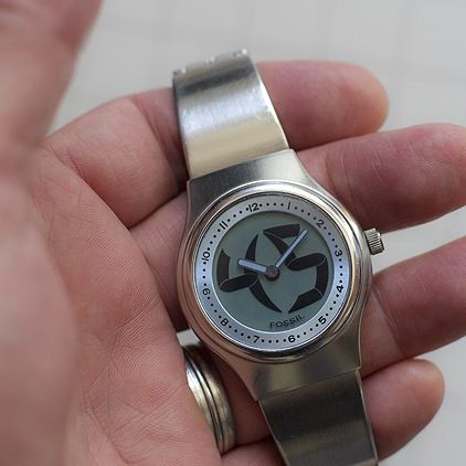 In de jaren 90 schijnen er allerlei variaties te zijn geweest op basis van dit horloge. Met gekleurde achtergrond, bewegende wereldbollen en dergelijke. Het gaf toen een modern ‘James Bond’ gevoel. Hoewel er heel veel van verkocht moeten zijn heb ik er eigenlijk nooit iemand mee gezien. Maar goed, deze heeft minimaal 20 jaar stilgestaan en de oude batterijtjes zaten er nog in. Maar hij doet 't prima.
