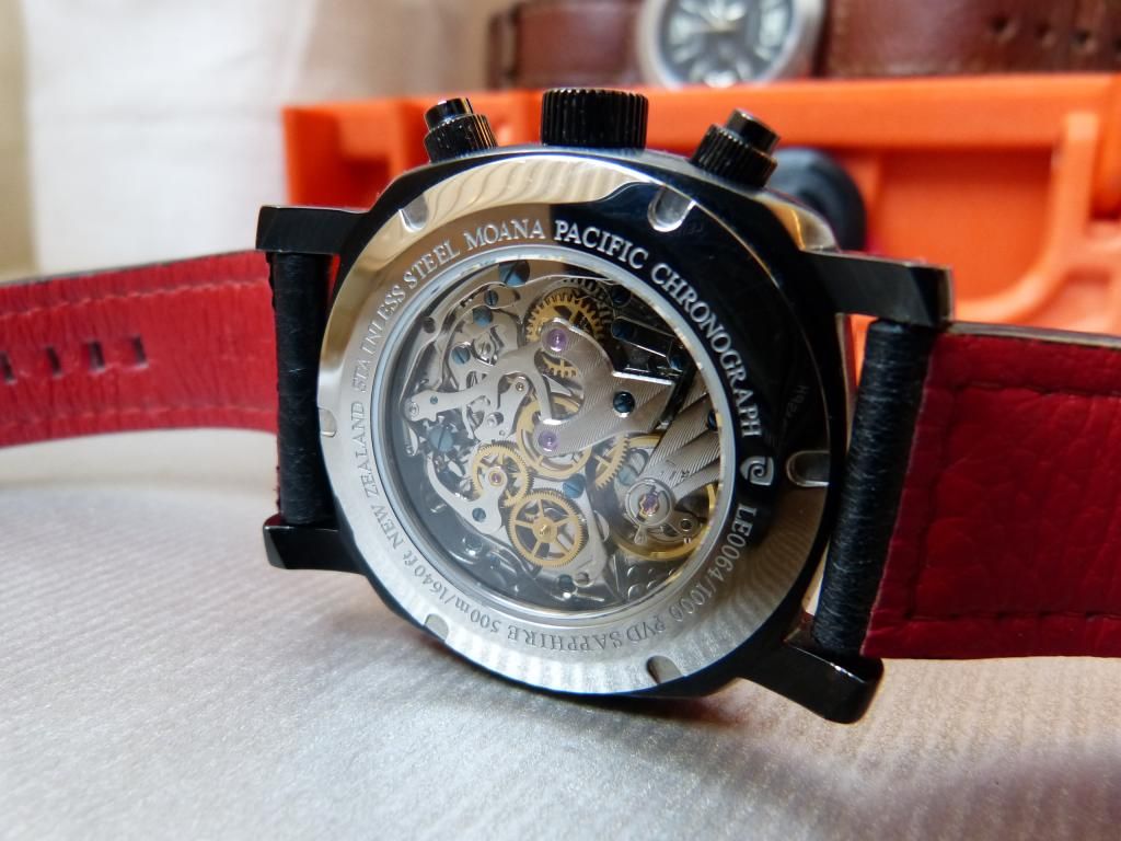 Het uurwerk dat is toch wel iets moois. Ik heb zelf geen handopwinders maar man wat ziet dat er leuk uit! Stukken interessanter dan de kijkvensters waarin je voornamelijk een rotor ziet bungelen. Een goede keus dus om dit uurwerk niet te verstoppen achter een of ander houtje