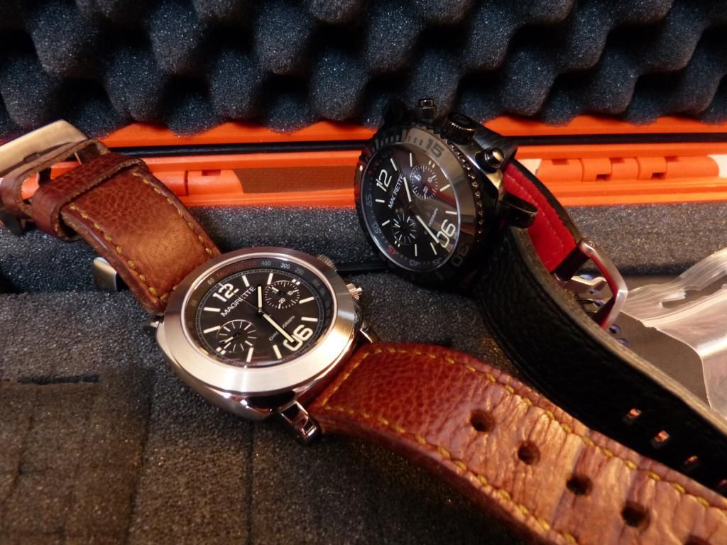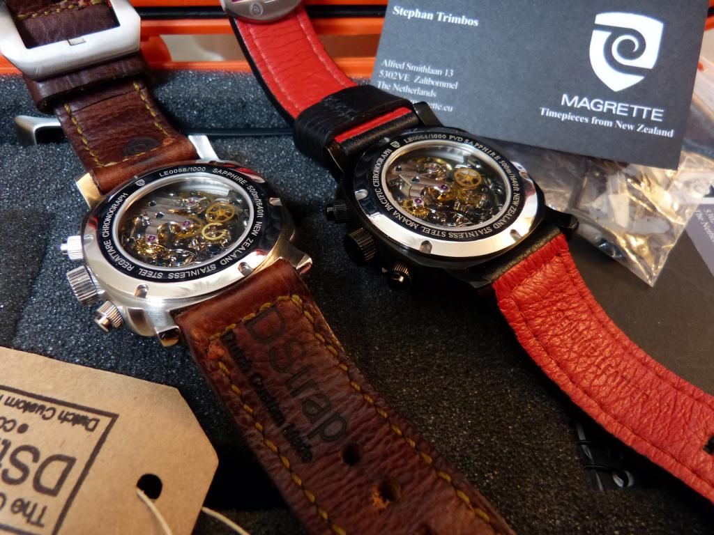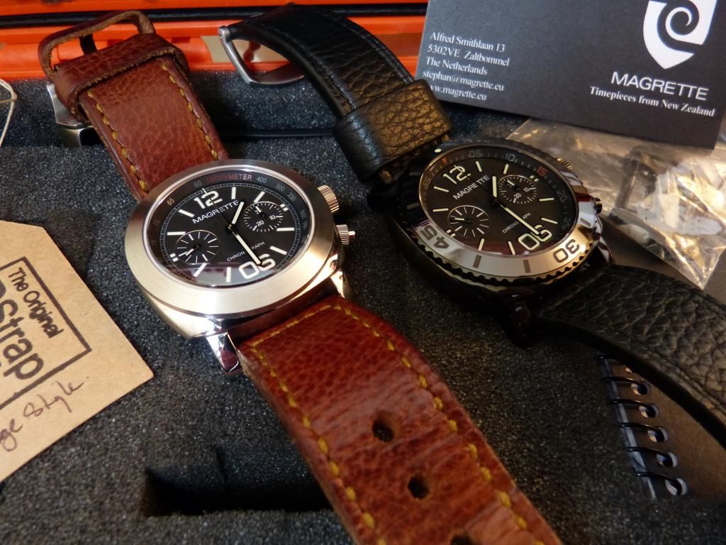 Nou de week van de magrette chrono’s zit er voor mij weer op. In een cafeetje heb ik het (overigens supertoffe) oranje koffertje inclusief horloges overgenomen van maardein en een weekje later mocht ik hem onder het genot van een appetijtelijke lunch weer overdragen aan Veekeren.