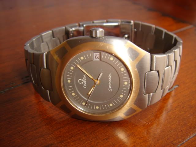 [i]Horloge, Titanium/goud is dacht ik van 1987. Hiermee is mijn horloge tik begonnen. Ik zag hem in een tijdschrift toen ik per KLM onderweg was naar Zweden. Was er helemaal weg van tot ik de prijs zag (toen ongeveer 3000 gulden). Later er toch een gekocht met 75% korting toen het model eruit was. Je ziet ze op E bay nog we eens langskomen.