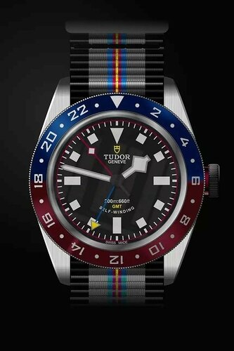 Aiaiai. Pepsi meets Alain Silberstein. Die nato brrrrr. Tudor is natuurlijk wel een beetje vrijer dan Rolex maar ik heb hier gemengde gevoelens bij. Niet onaardig maar een tikkie…tja…ik snap dat geel en blauw ook niet helemaal.