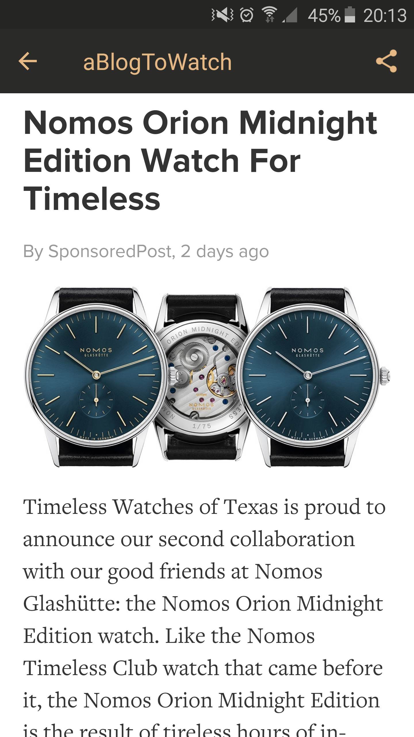 Ik had die nieuwe Nomos Orion ook net gespot. Mooi. Deze kleur was al verkrijgbaar bij de Zurich blaugold, maar die vind ik wat groot voor een dress. Deze Orion met 38mm ziet er goed uit!