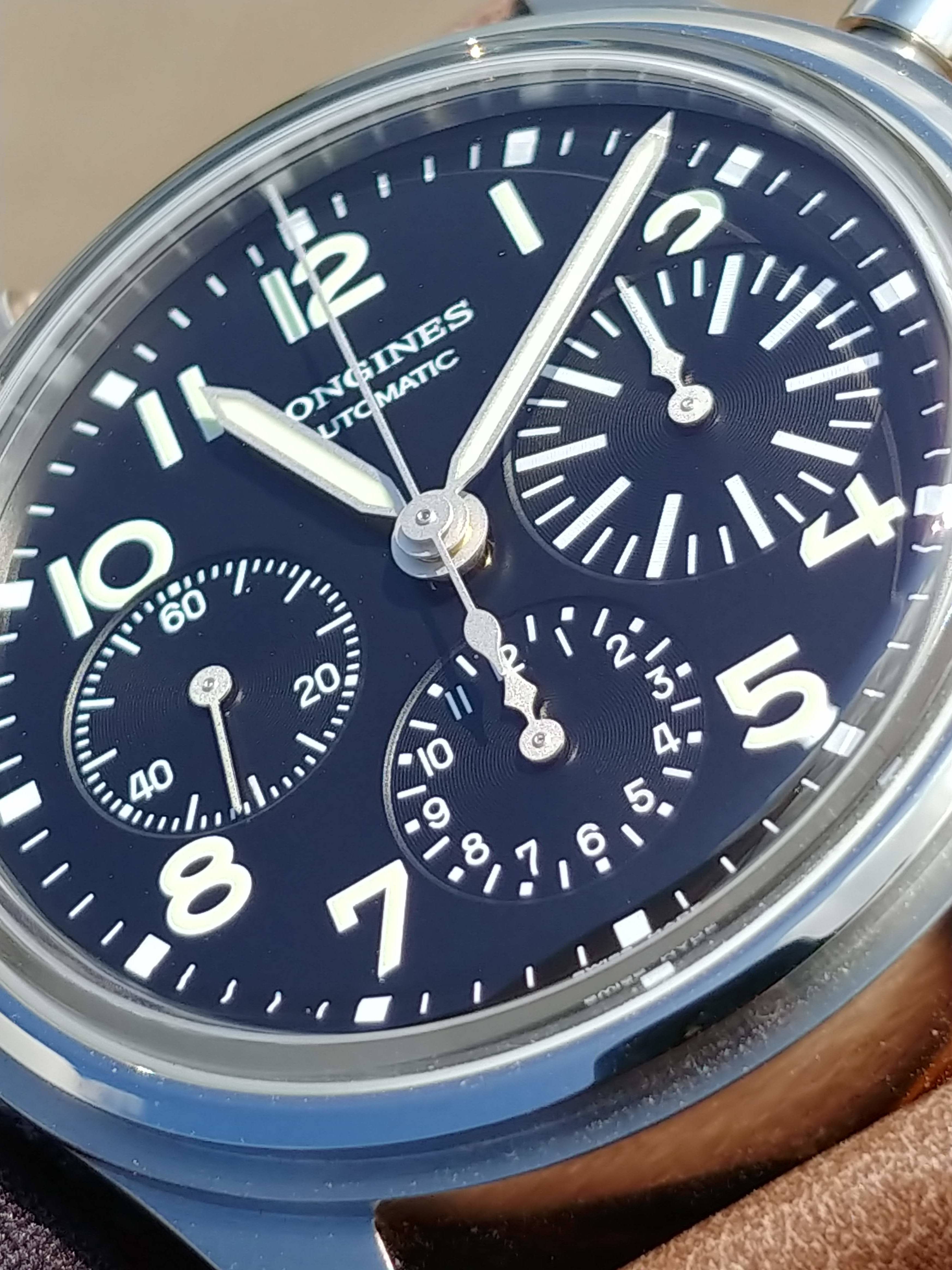 Dit is hem dan, de Longines Avigation BigEye op de originele band.