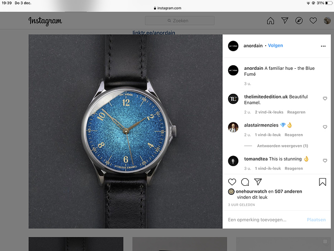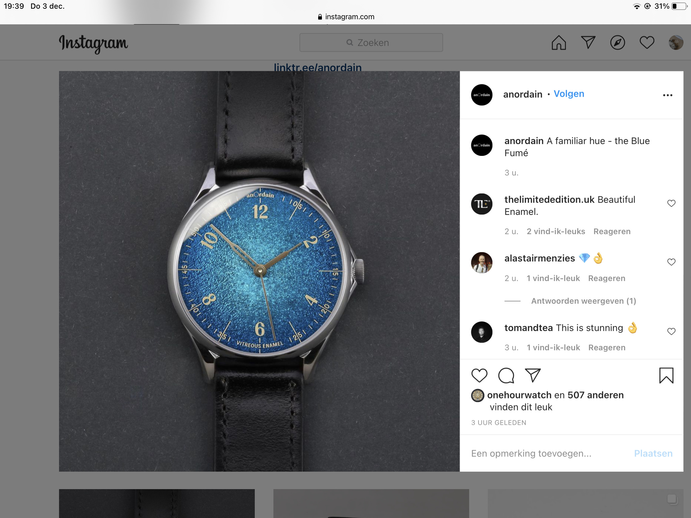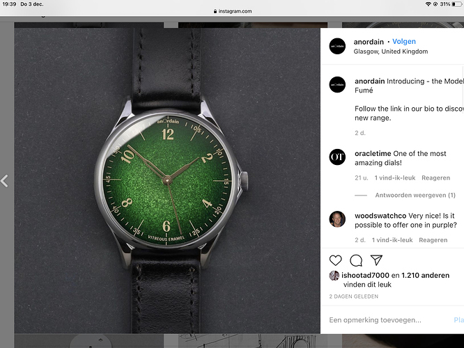 Een overzeese horlogeverslaafde wees me onlangs op het merk anOrdain. Het merk heeft twee modellen, met verschillende kleuren emaille wijzerplaten. Heeft iemand deze al eens irl gezien en of in handen gehad?