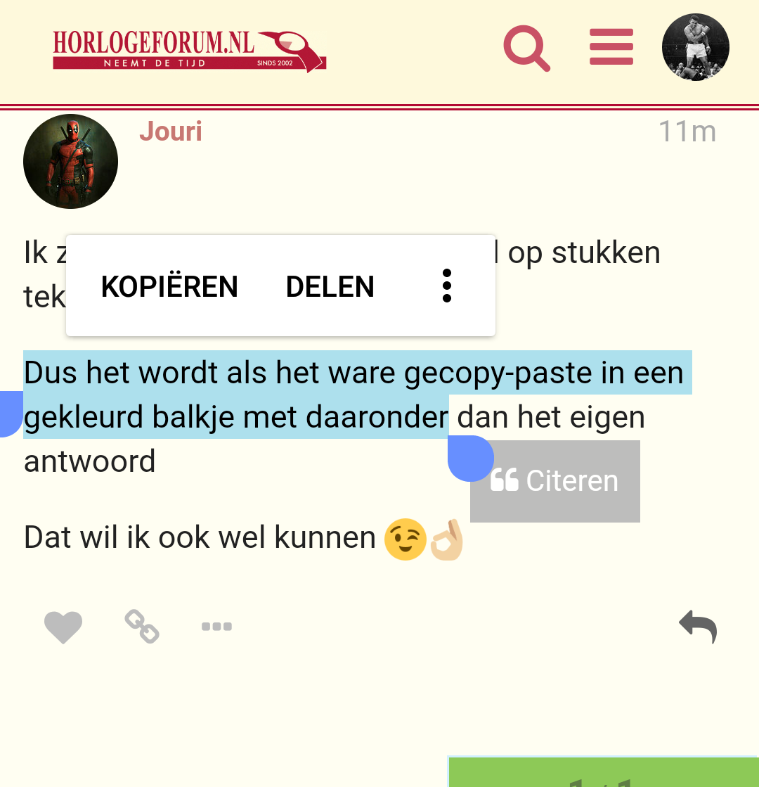 maar je kan dus niet als iemand al een quote gebruikt, die quote en zijn reactie in 1x selecteren om te quoten toch?