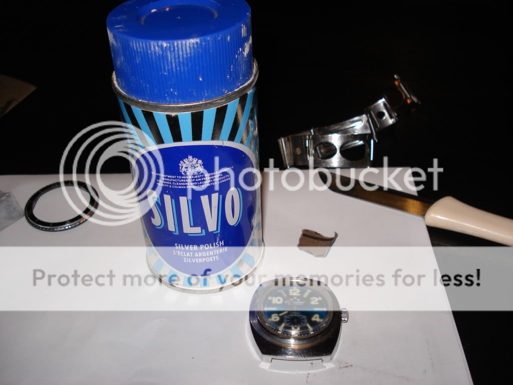 Ondertussen ook nog het glas gepolijst van een Tissot Automatic Seastar met zwarte wijzerplaat en witte wijzers.