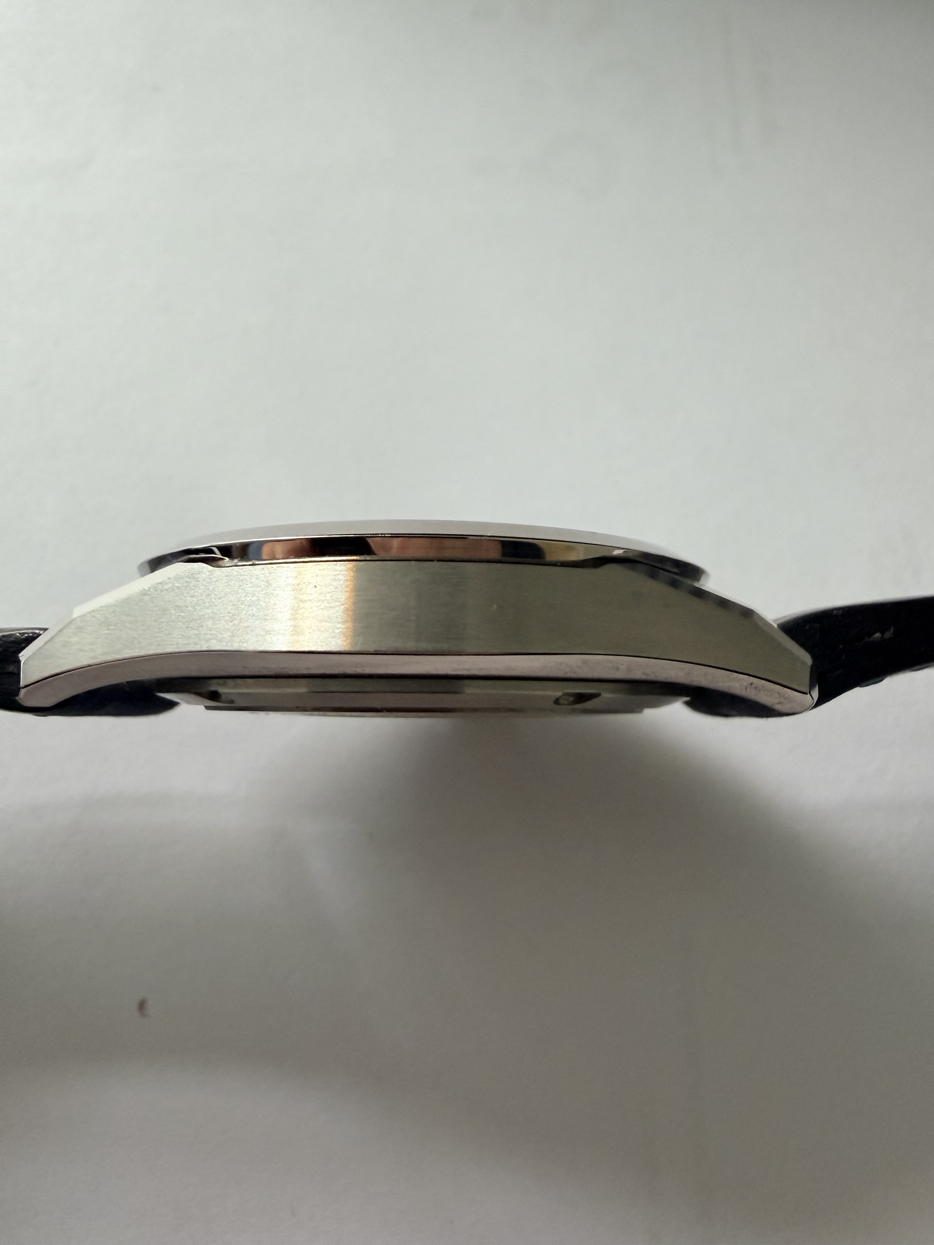 Originele doos en/of eventuele accessoires: Ja, met bijna ongedragen aligatorband met vouwsluiting. Krijgt er een handgemaakt leren bandje bij (zit er op; zie foto’s)