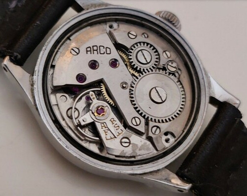 Overigens ben ik van mening dat het bij de FHF 183 wel degelijk om een variant van het FHF 26 uurwerk in de Arco van @Bertvp gaat. Of dat echt zo is, weten we pas zeker als we een afbeelding zouden kunnen zien van de wijzerplaatzijde van dat horloge. Misschien dat Bert er een foto van zou kunnen maken als -misschien- het horloge toch een keer een servicebeurt zou (moeten) krijgen.