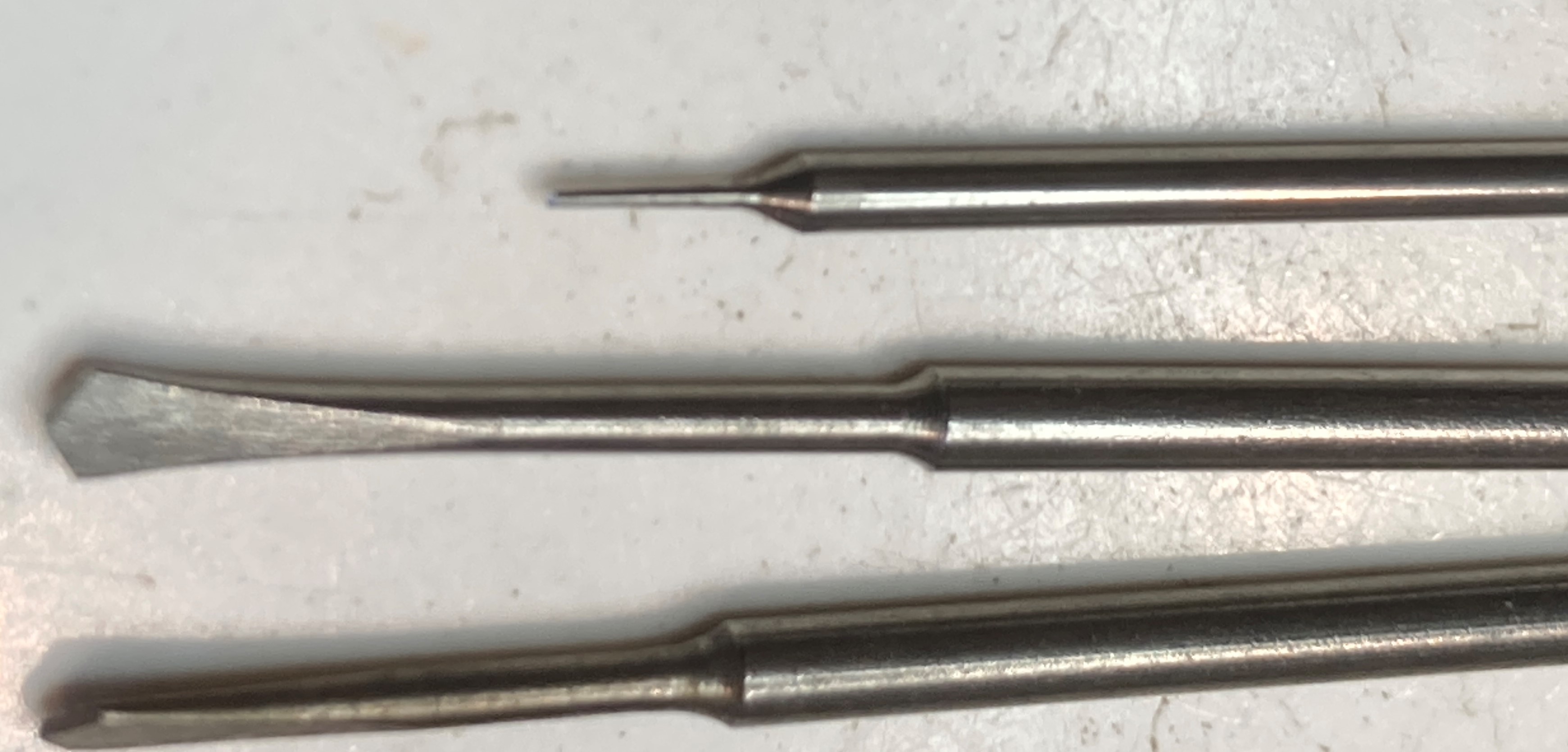 Om dit soort klusjes met goed resultaat in orde te maken, is het beter om de kroon in de draaibank te zetten, vervolgens met een frees met ronde kop zachtjes op de schroef te zetten, er zijn diverse tandarts frees inzet stukken van carbite met vele maten in omloop, en zachtjes druk op de frees zetten.