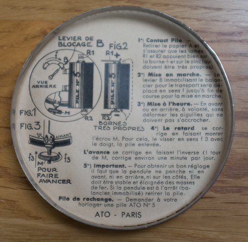 Ooit op een techniek beurs gekocht. Eenvoudig electrisch uurwerk met magneet spoel die de slinger aandrijft. Spoel trekt magneet slinger aan, stroomkring wordt onderbroken, slinger valt terug, stroomkring weer gesloten en nieuwe puls wordt gegeven. De gebruiksaanwijzing zit in de achterdeksel geplakt.