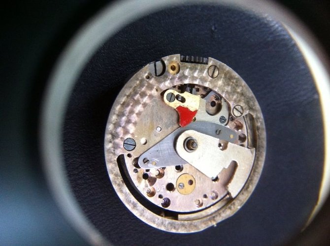 Daar zit een indicator. Als je naar de foto van het uurwerk kijkt, kun je dat zien, Ik denk dat die rood/zilver verspringt met het ritme van een seconde (?) als indicatie dat het uurwerk loopt, maar @vouwfietser weet het vast precies.