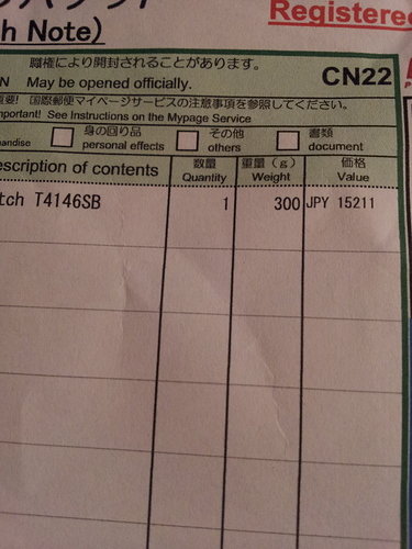 Ondanks het feit dat de Japanner er in tegenstelling tot de gemiddelde chinees er niet op zet dat het een “gift” of een “commercial sample” betreft maar de werkelijke waarde toch weer mazzel gehad. Geen extra kosten