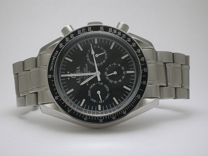 Al rondkijkend op de site van ene Ali uit het verre Oosten kwam ik voor een spotprijs een op een speedmaster gelijkend klokje tegen met een zgn. “Sterile Dial” in quartz uitvoering.