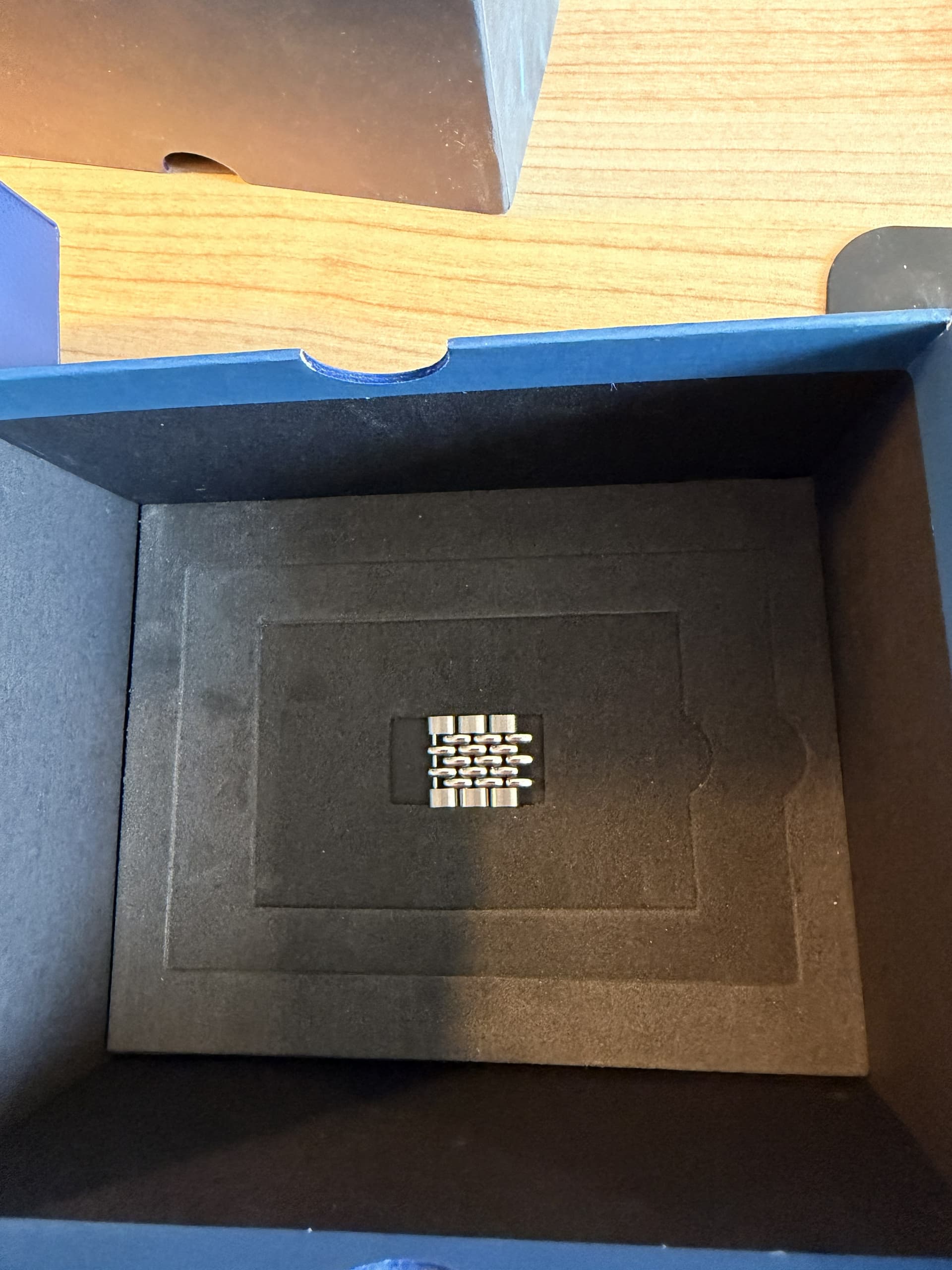 Conditie (krassen, werking etc): op de zijkant van de rechter boven-lug zit een minuscuul veegje dat ik zo goed mogelijk gefotografeerd heb en in werkelijkheid nauwelijks te zien is. Verder is de kast en de band voor zover ik kan zien volledig kras- veegvrij. Wel flinke desk dive sporen op de sluiting, ik ben een kantoortijger dus dat is onvermijdelijk. Afgezien van die twee dingen in onberispelijke staat.