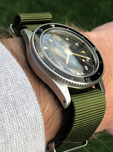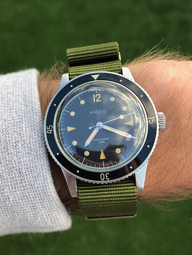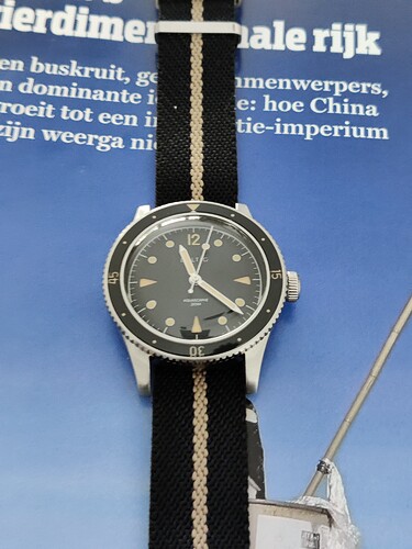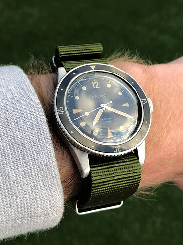 Staat hem goed. Ik moest even goed zoeken, maar de eer voor die combinatie komt @vierport toe. Die had deze Baltic al op de groene nato toen ik die van hem kocht.