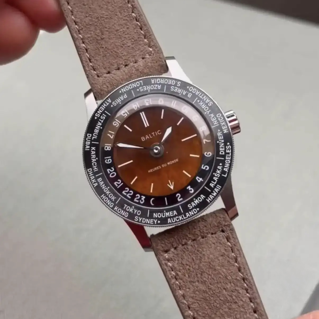 Kan eindelijk posten. Had een prototype van deze world timer om mijn pols en in handen gehad toen ik vorige maand in London bij de Baltic Watches showroom was.