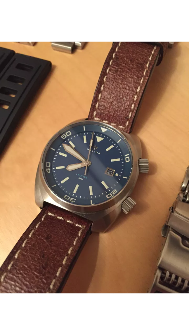 Bruin is zeker een optie naar mijn idee. Echter, mijn idee is wel (iets) lichter qua kleur dan de afgebeeld. Beetje richting de kleur zoals Junghans 'm op zijn blauwgekleurde wijzerplaat Meister en handaufzug standaard heeft.