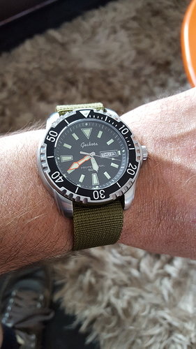 Ik had 2 dikke Zulu Diver nato’s gekocht en 2 dunnere, de dikke heb ik inmiddels met de schaar ontdaan van het stuk wat ervoor zorgt dat het uurwerk niet verschuift wat dankzij het dikkere materiaal toch niet gebeurt